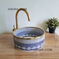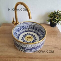 Our wash basin sink in ceramic, handmade hand painted inside out by artisans in the city of Fez..
