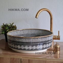Elegant, Little sink straight from Morocco. This Moroccan sink is made in the traditional Moroccan technique. Technique from Marrakech is famous for the richness of design and patterns as well as for the intensity of colors which are so characteristic for Morocco bathed in sunlight. The Moroccan sink will definitely help you to obtain a more personal and individualistic style of you bathroom.