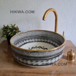 Moroccan wash basin sink in ceramic, handmade hand painted inside
