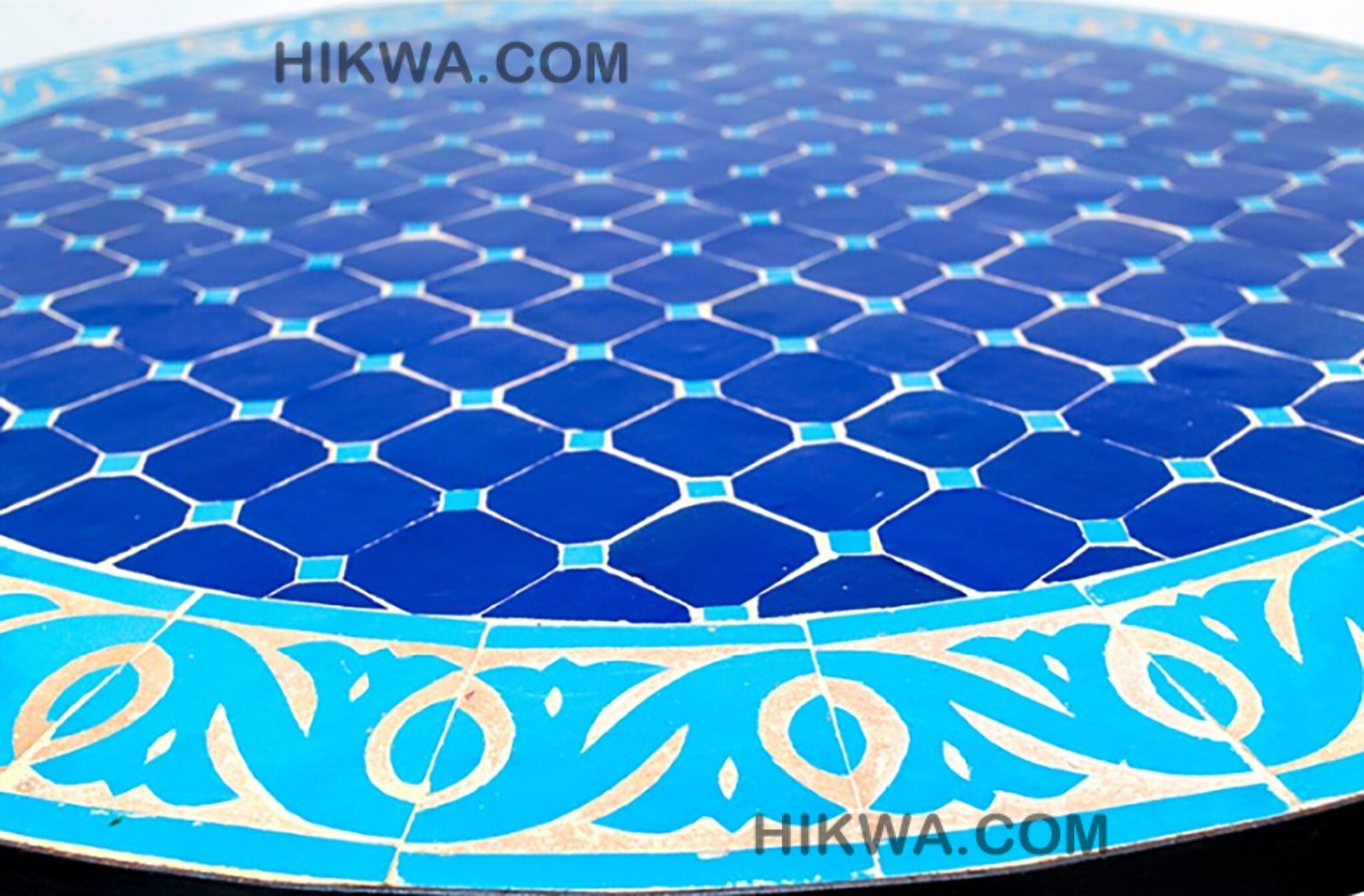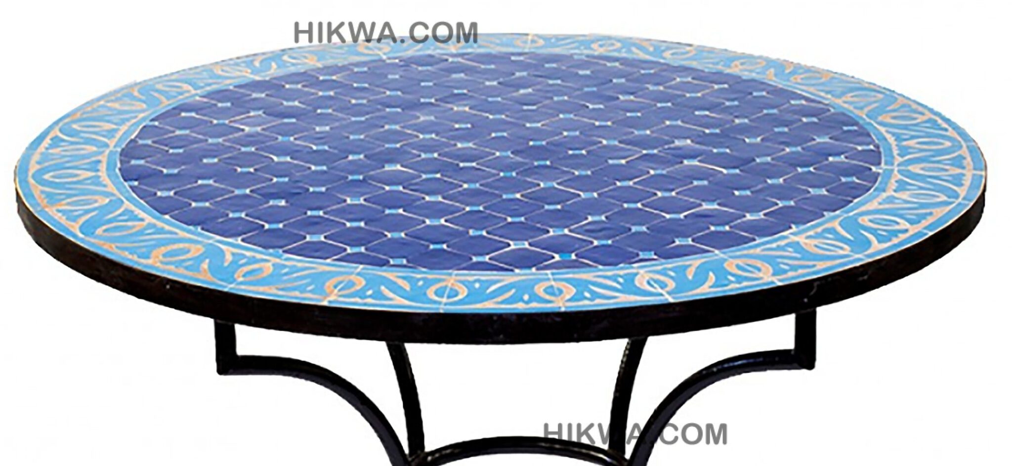 Handcrafts Round Blue Mosaic Tile Dining Room table