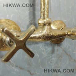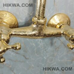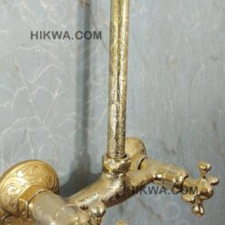 Handmade etched brass outdoor shower system – unlacquered brass shower faucet