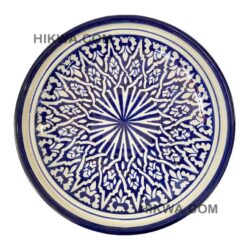 Fes ceramic tagine dish, handmade and hand-painted. This tagine is only for serving, and not for cook. This tagine dish is made to eat from in and also to decorate. This tagine is cooked twice at 1200 degrees, which allows it to be put in the dishwasher, also in the microwave.
