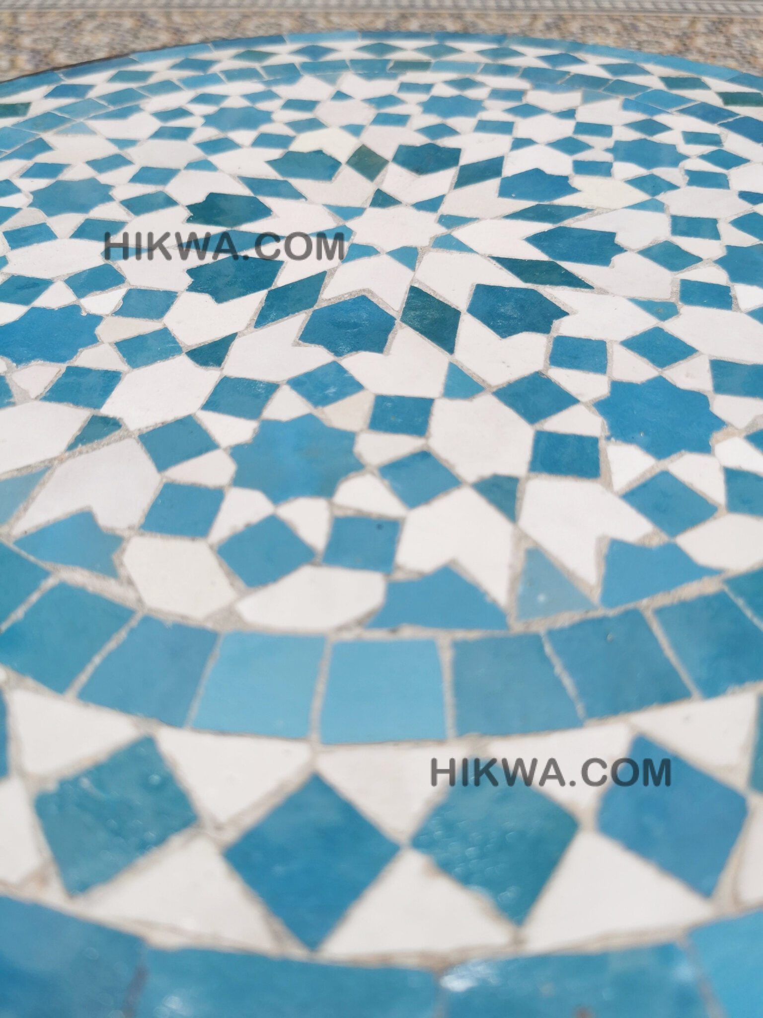 Moving to Zellige, when it bakes for the first time, and the second time with the paint it is given to Nekkach that decides what kind of pattern will be used on it depends on where Zellige will be put. He spreads them flipped in a geometrical pattern based on ancient references such as Karaouiyn, and the king’s palaces…