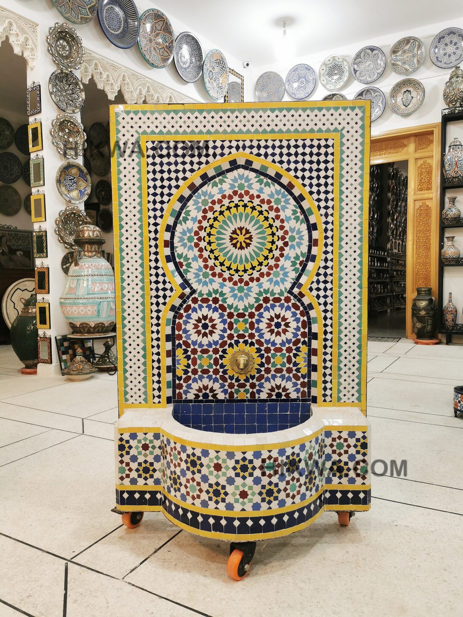 this amazing traditional Fountain was handcrafted by A professional worker, it represents the cultural diversity of Moroccan handcrafts and that is because of its design, material and the colors used at the surface of the table, the height of this amazing piece of art is 55 cm with a width of 40 cm and a possibility of personal customization. by obtaining such objects you would be helping a dying craft to flourish again so that contact between the past and the present would never die not mentioning the happiness it would bring to poor workers on fields like this .
