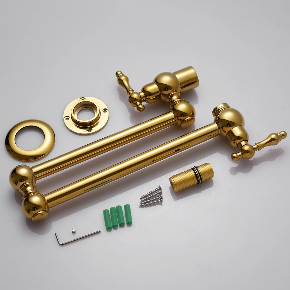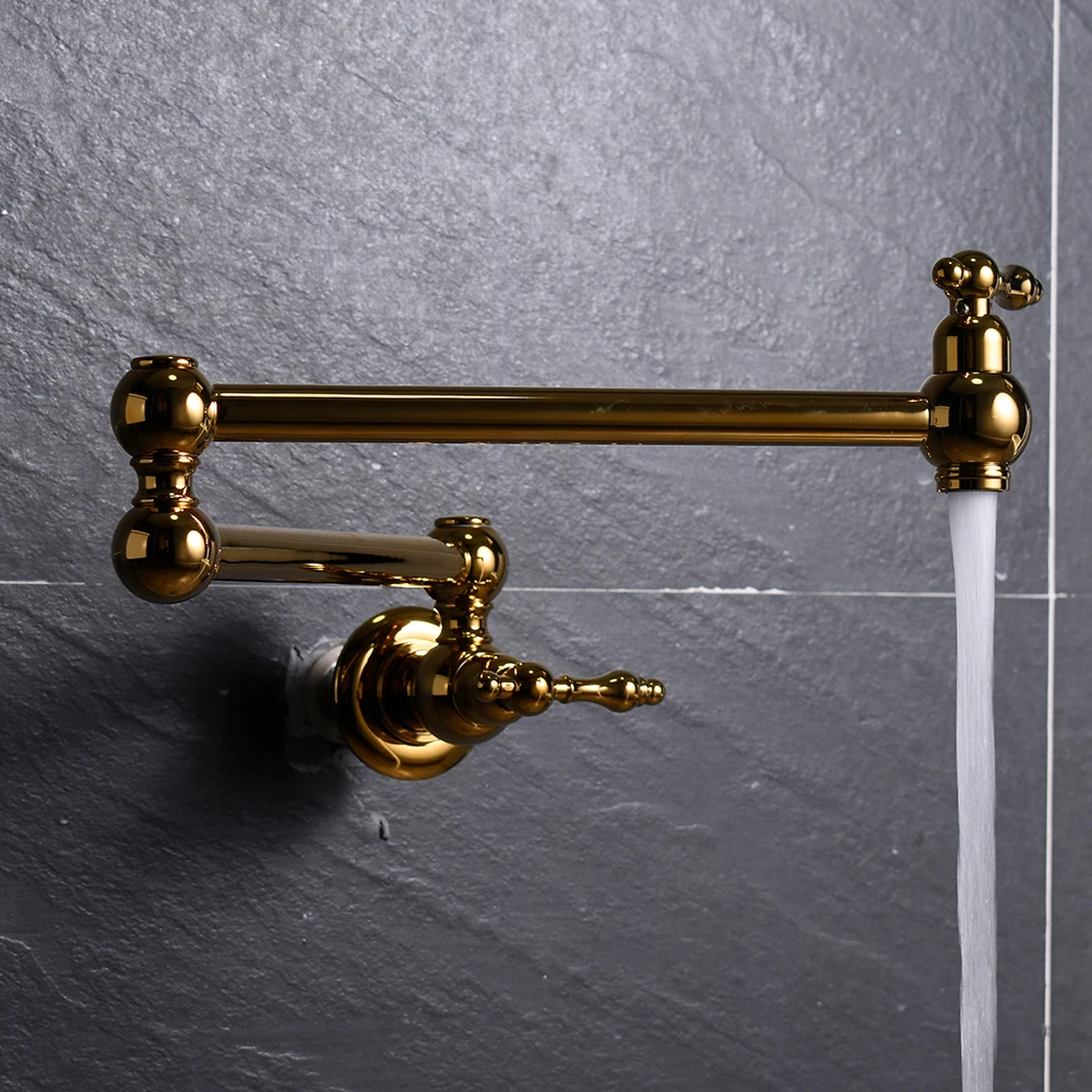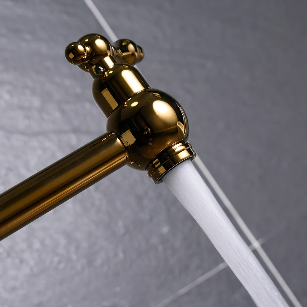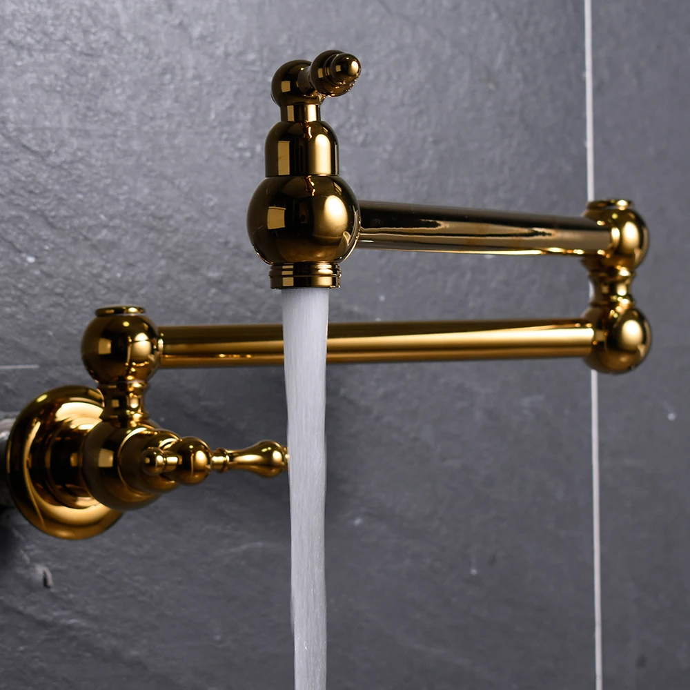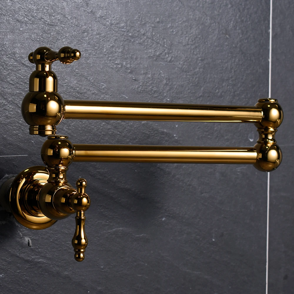 Lead free gold folding kitchen tap two handles wall mount pot filler kitchen faucet