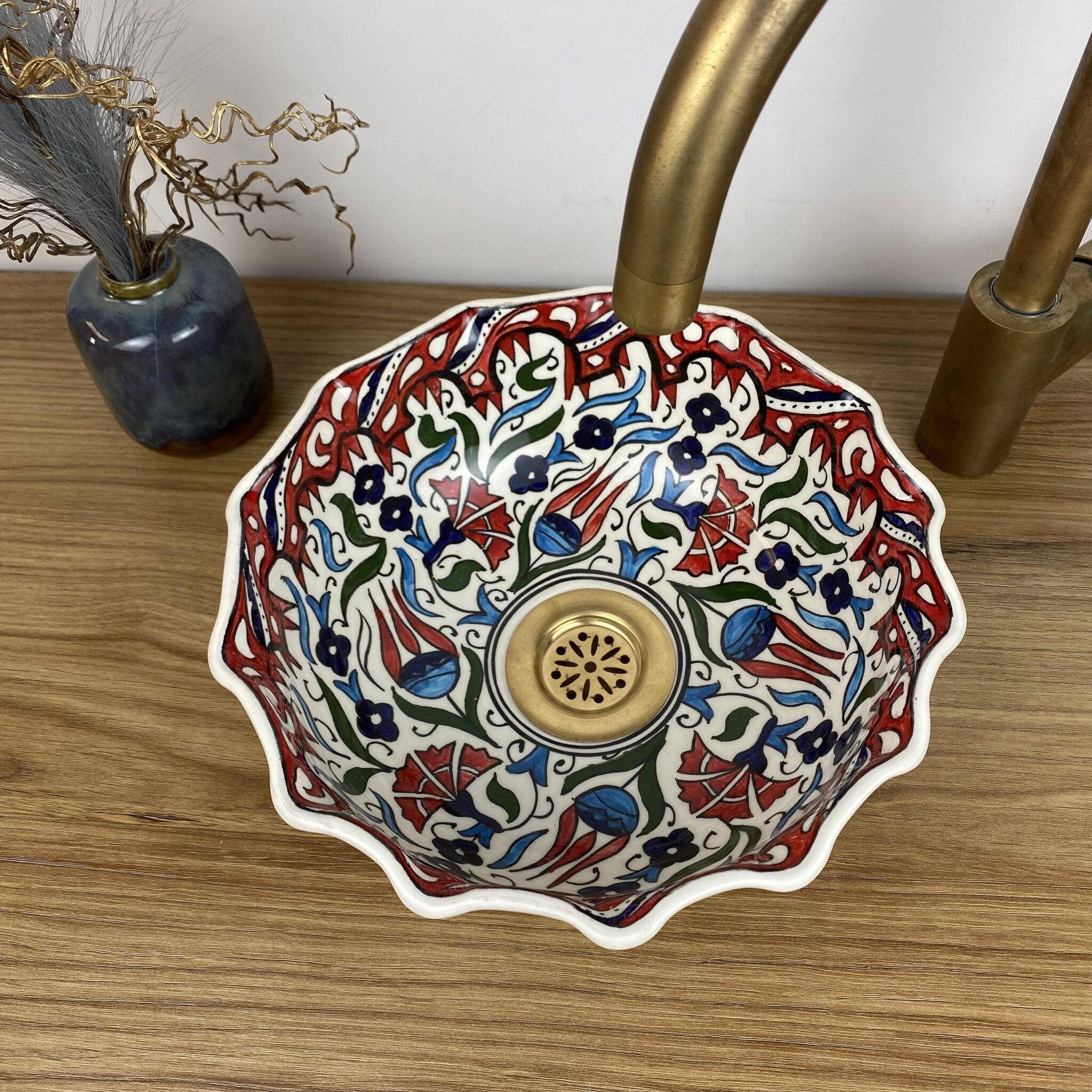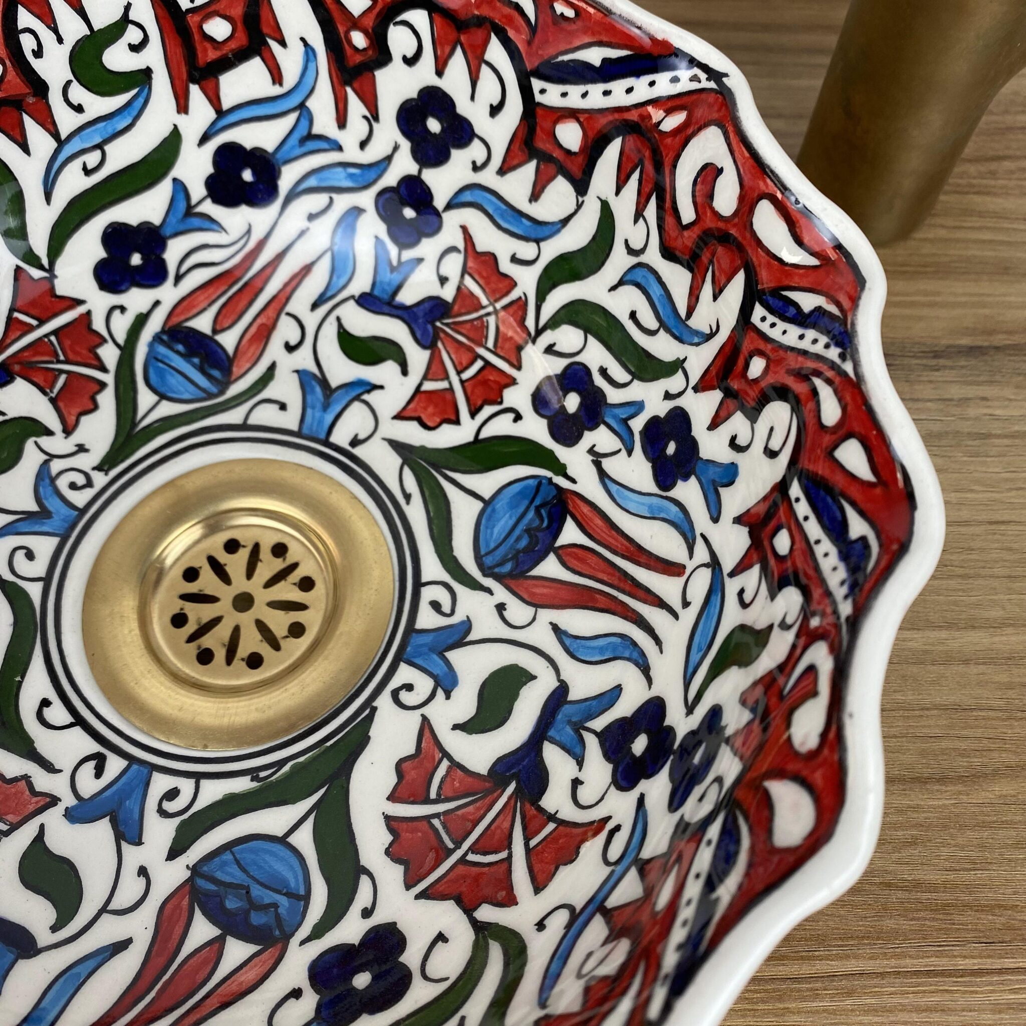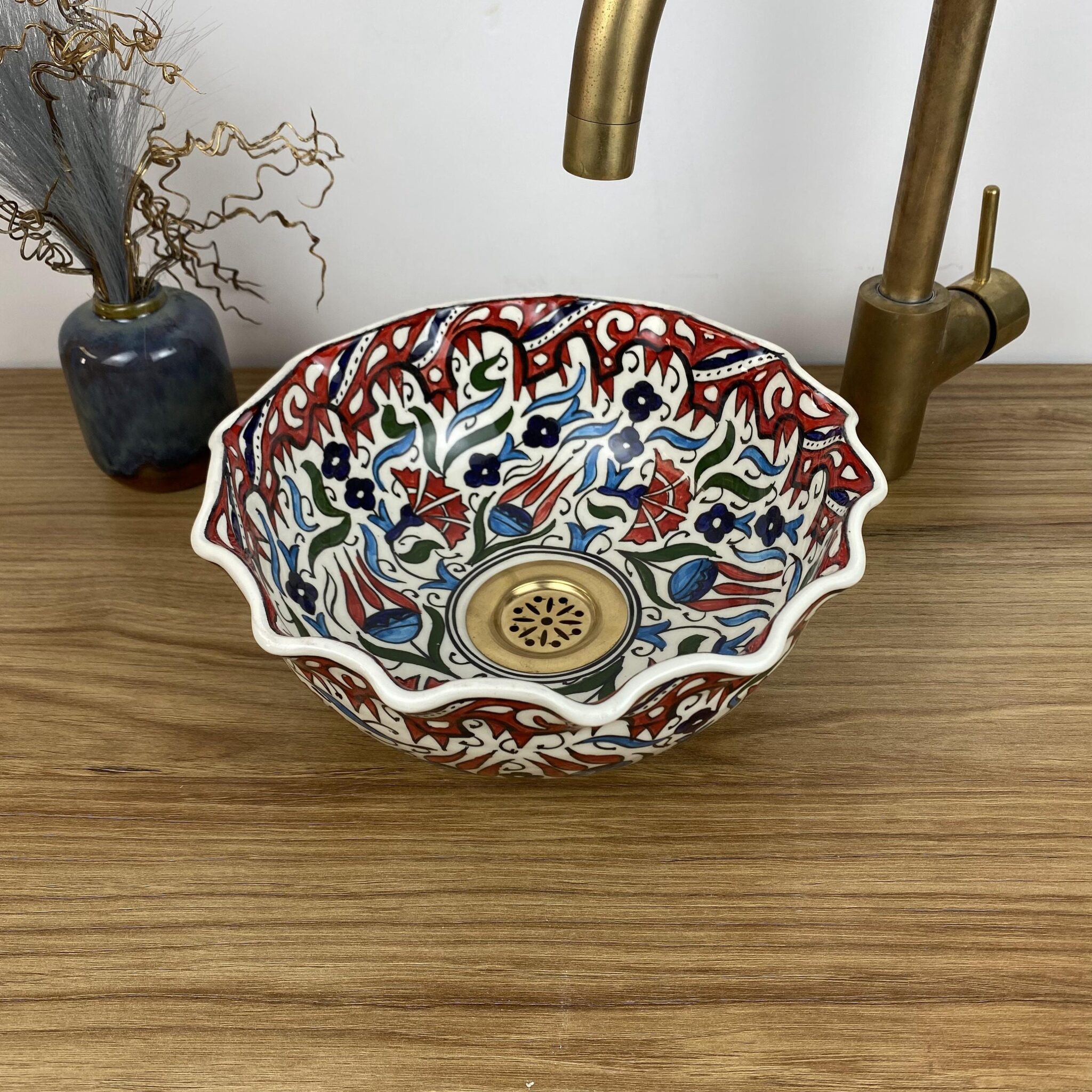 Modern Bathroom Vessel Sink Made From Ceramic -Multicolor Ceramic Sink -Rustic Handcrafted Ceramic Sink – Moroccan Pottery