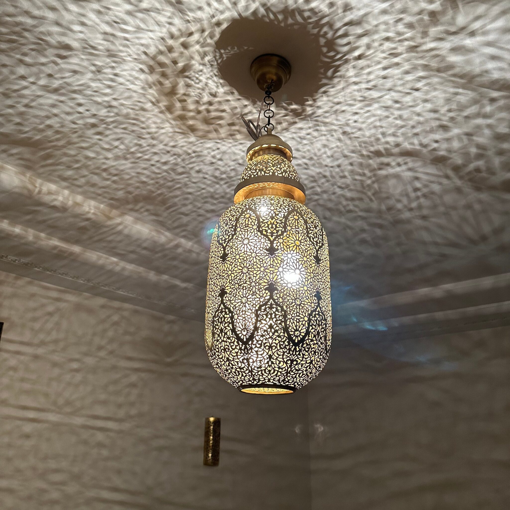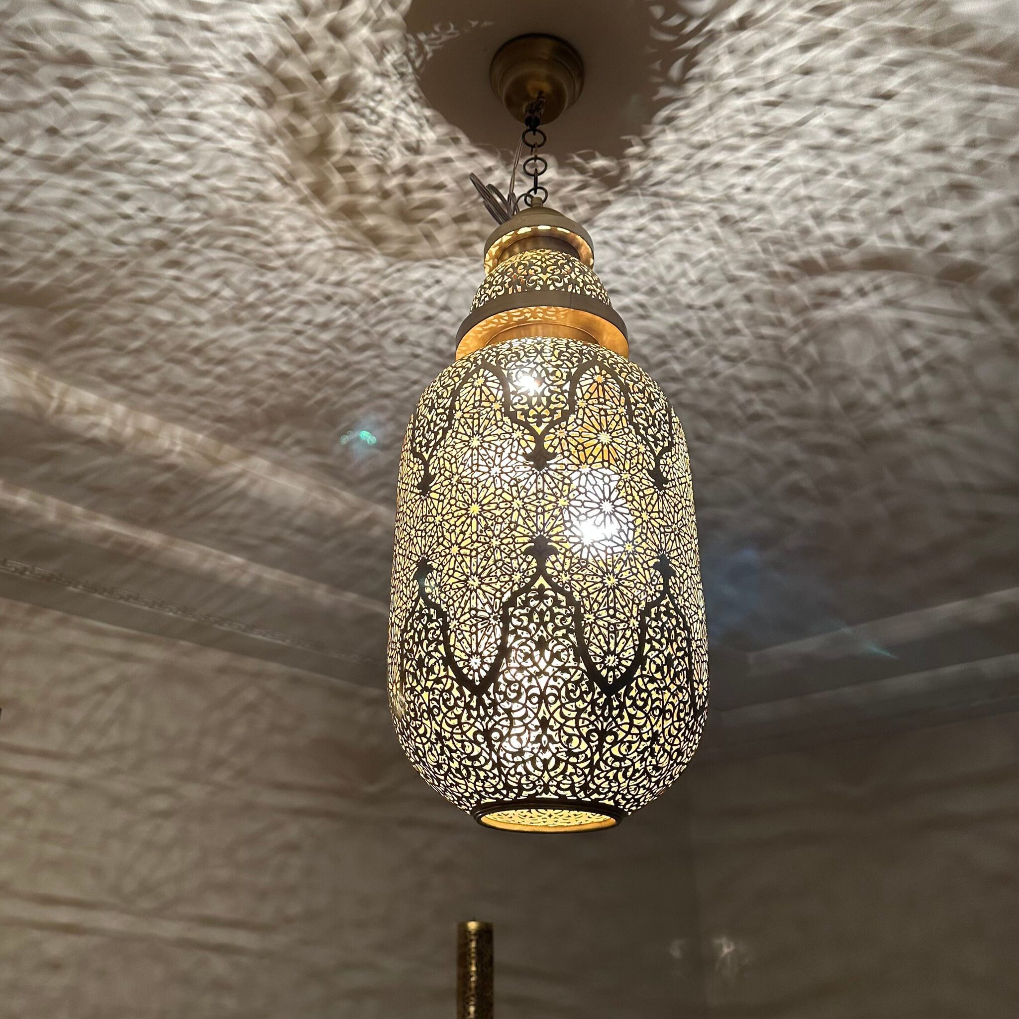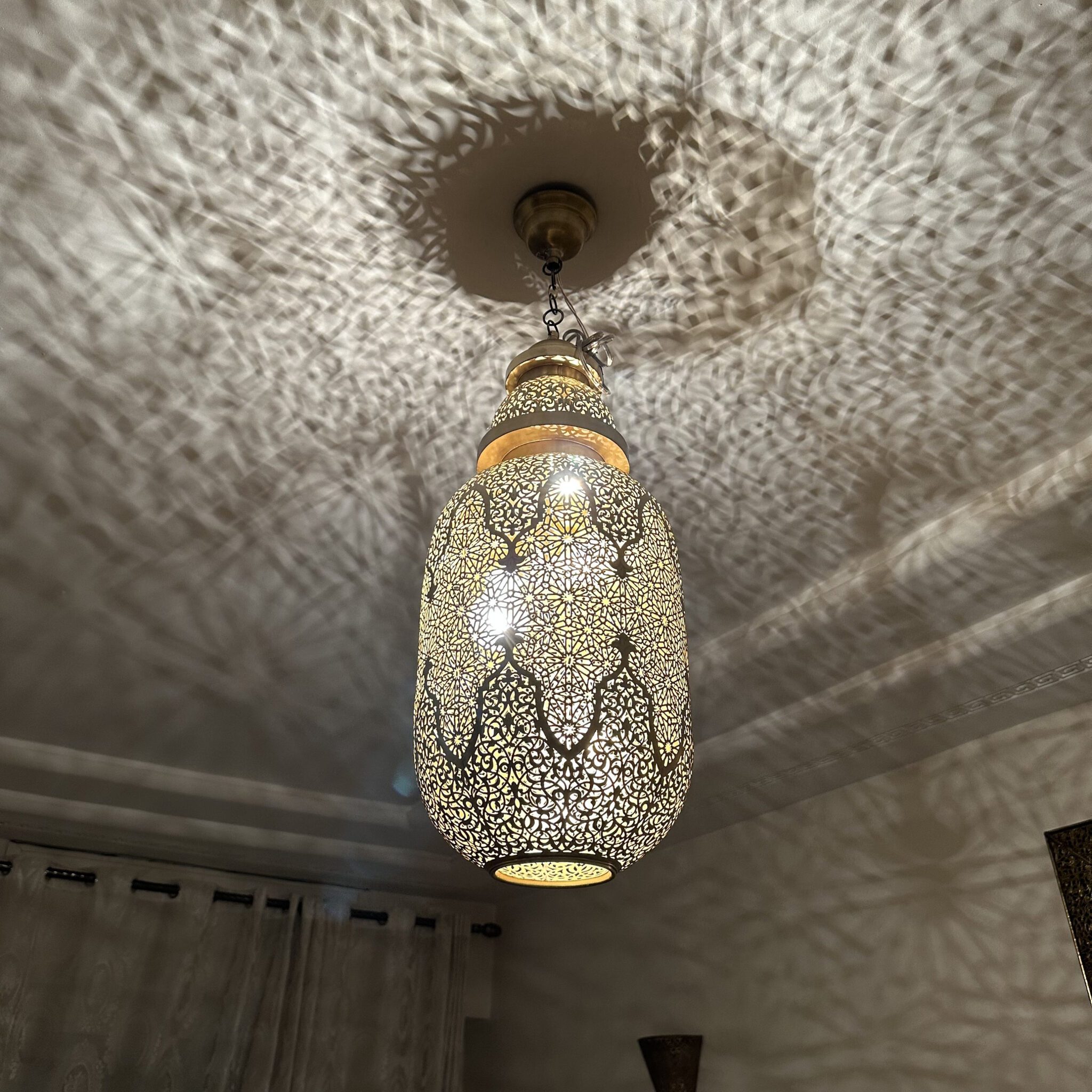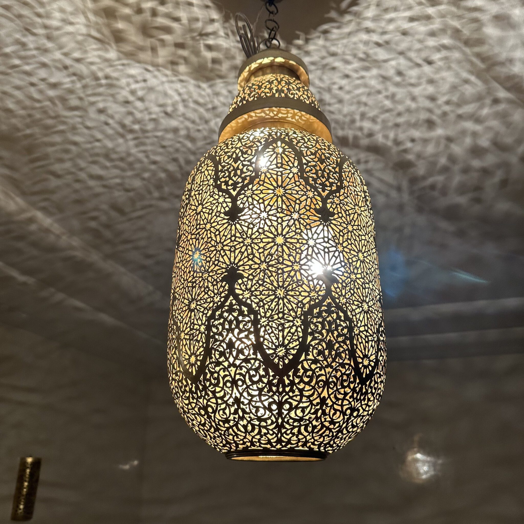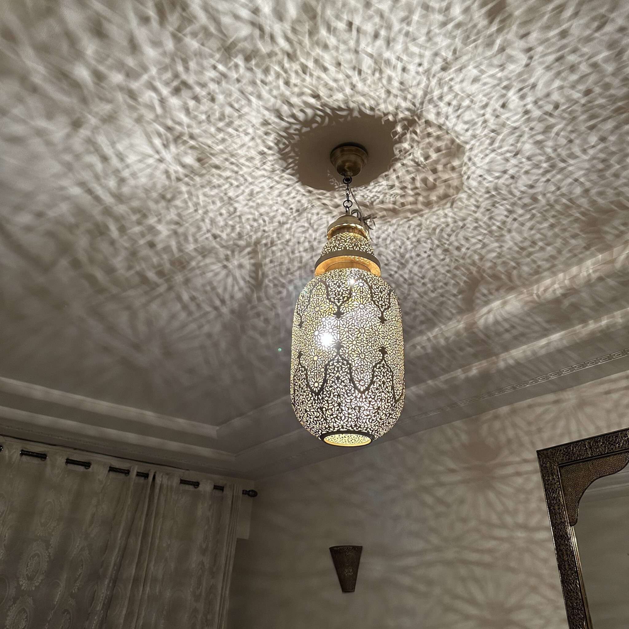 This hanging lamp producing a great effect in the room when lighting, giving a Moroccan and oriental style to your interior desing.