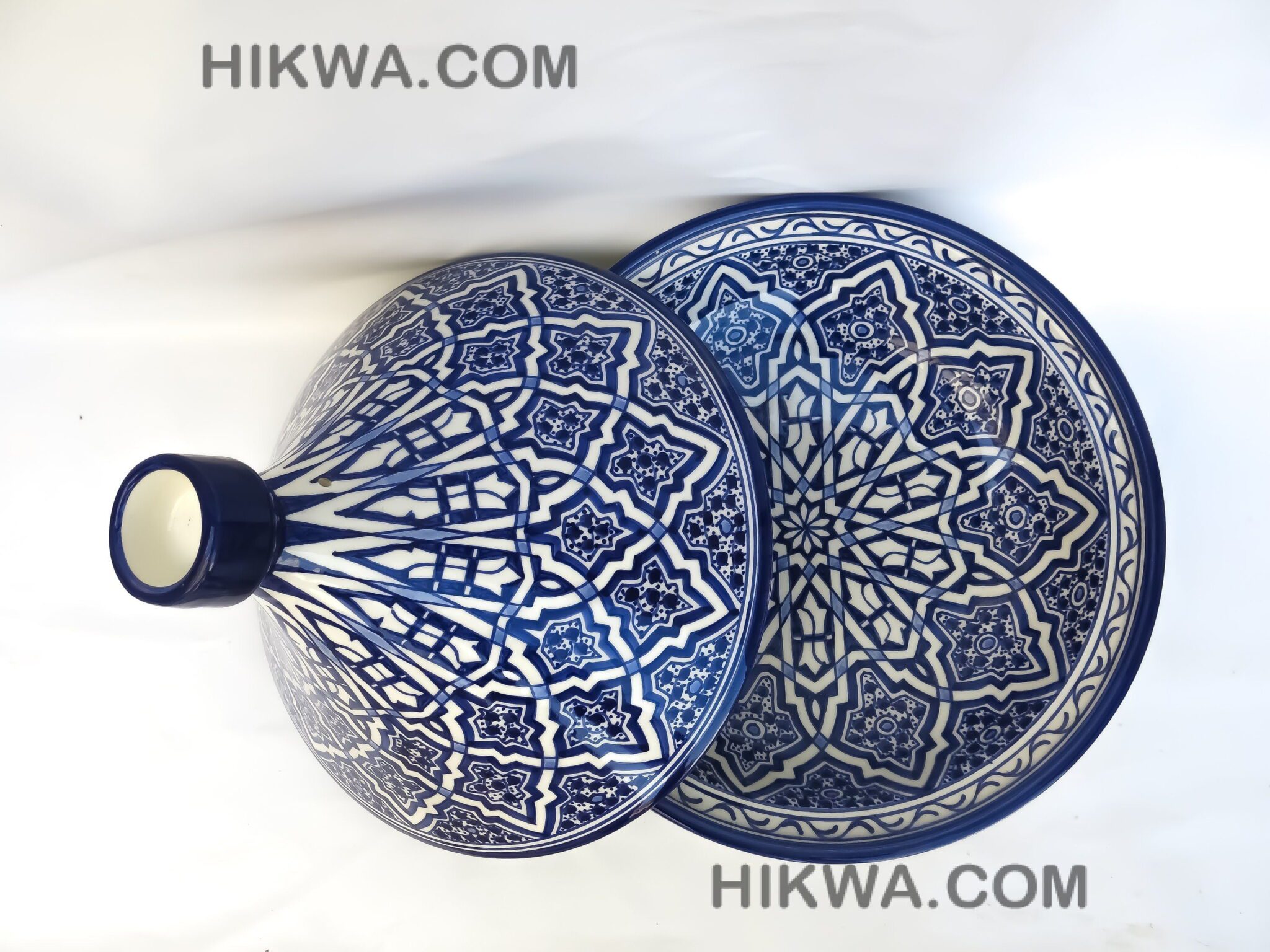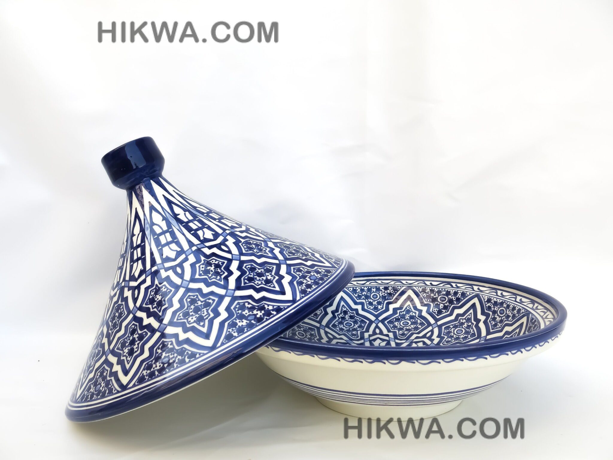this tagine can be used as a serving dish or as a decoration item. It is entirely handmade and hand-painted and signed at the bottom.