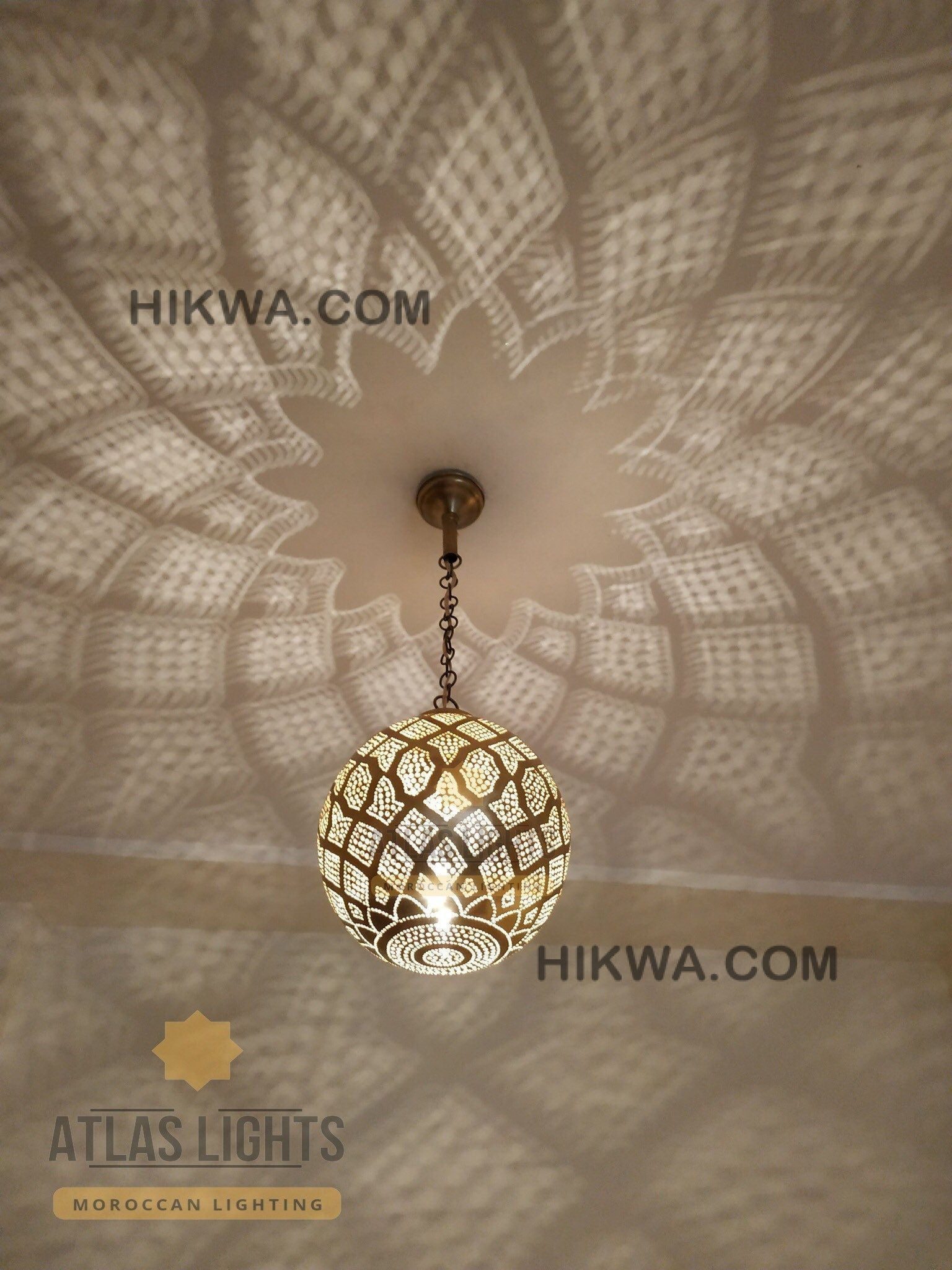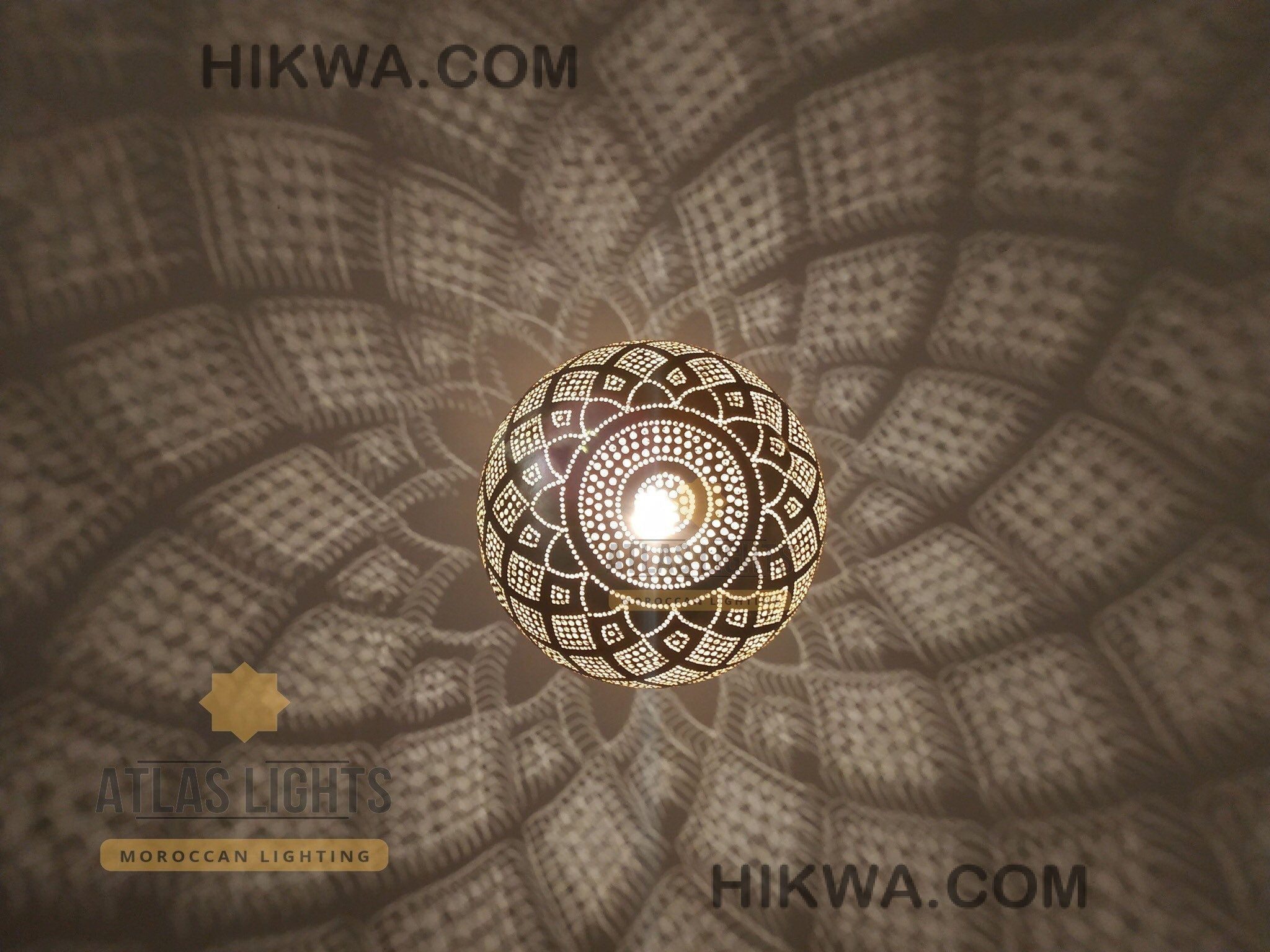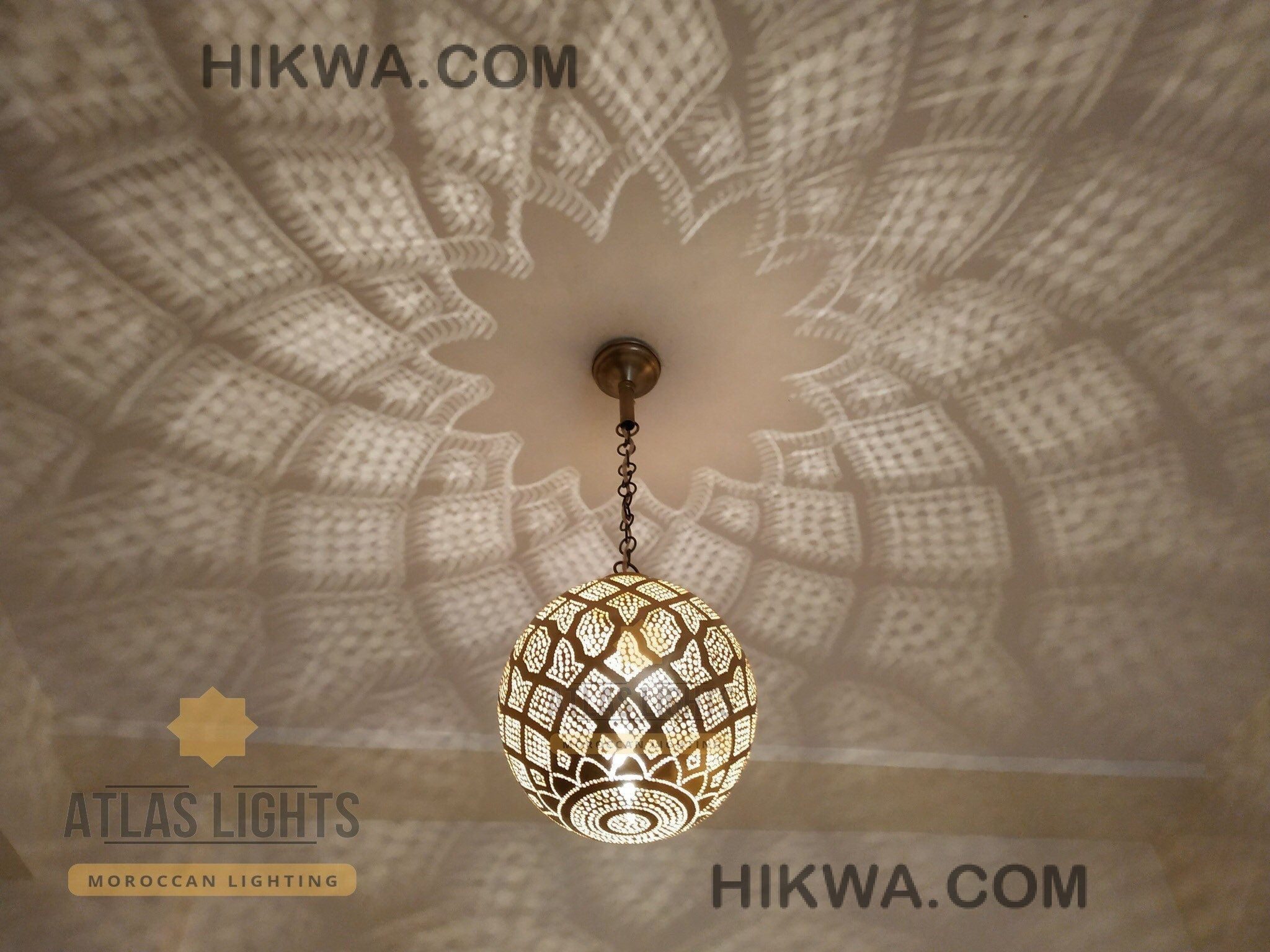 Delicately handmade with our artisans’ ‘punching’ technique, our Moroccan vintage hanging ceiling light Moroccan pendant light is contemporary and emits a sparkling light through each of its punched circles.