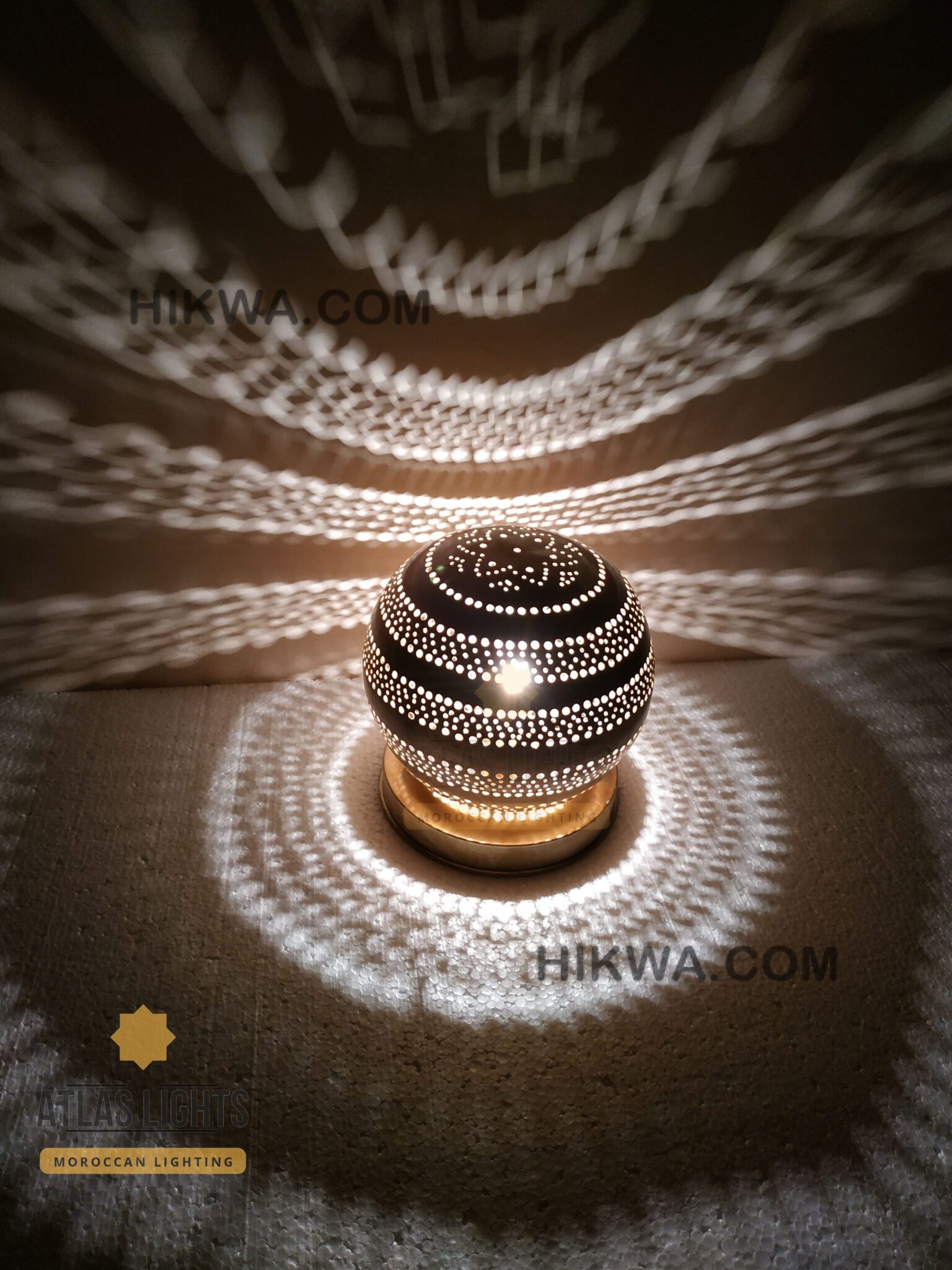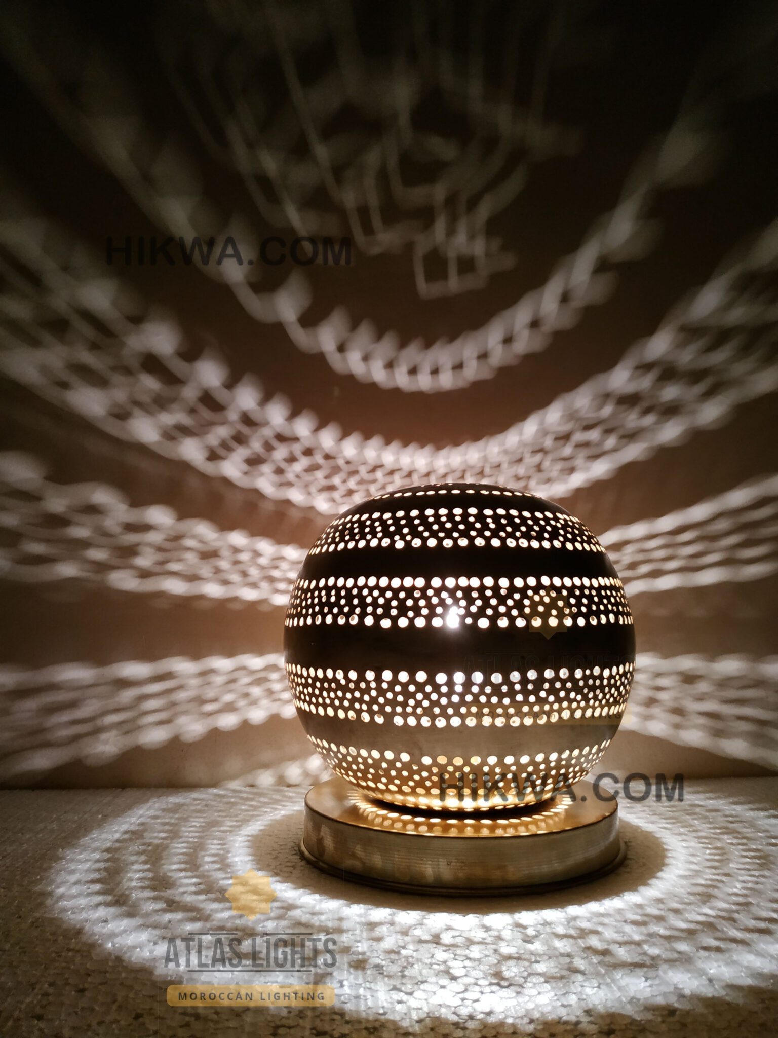 This Table lamp is made by moroccan master craftsmen in Brass the surface is perforated, which will add a touch of craftsmanship to your interior by diffusing a reflection on the walls as well as the ceiling , and to illuminate the room.