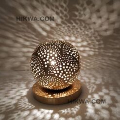 Moroccan night light in the shape of a sphere, lampshade, lantern, and decoration made of brass made by hand. Perfect decor for your home for any room in your home: bedroom, living room, entry, and office.