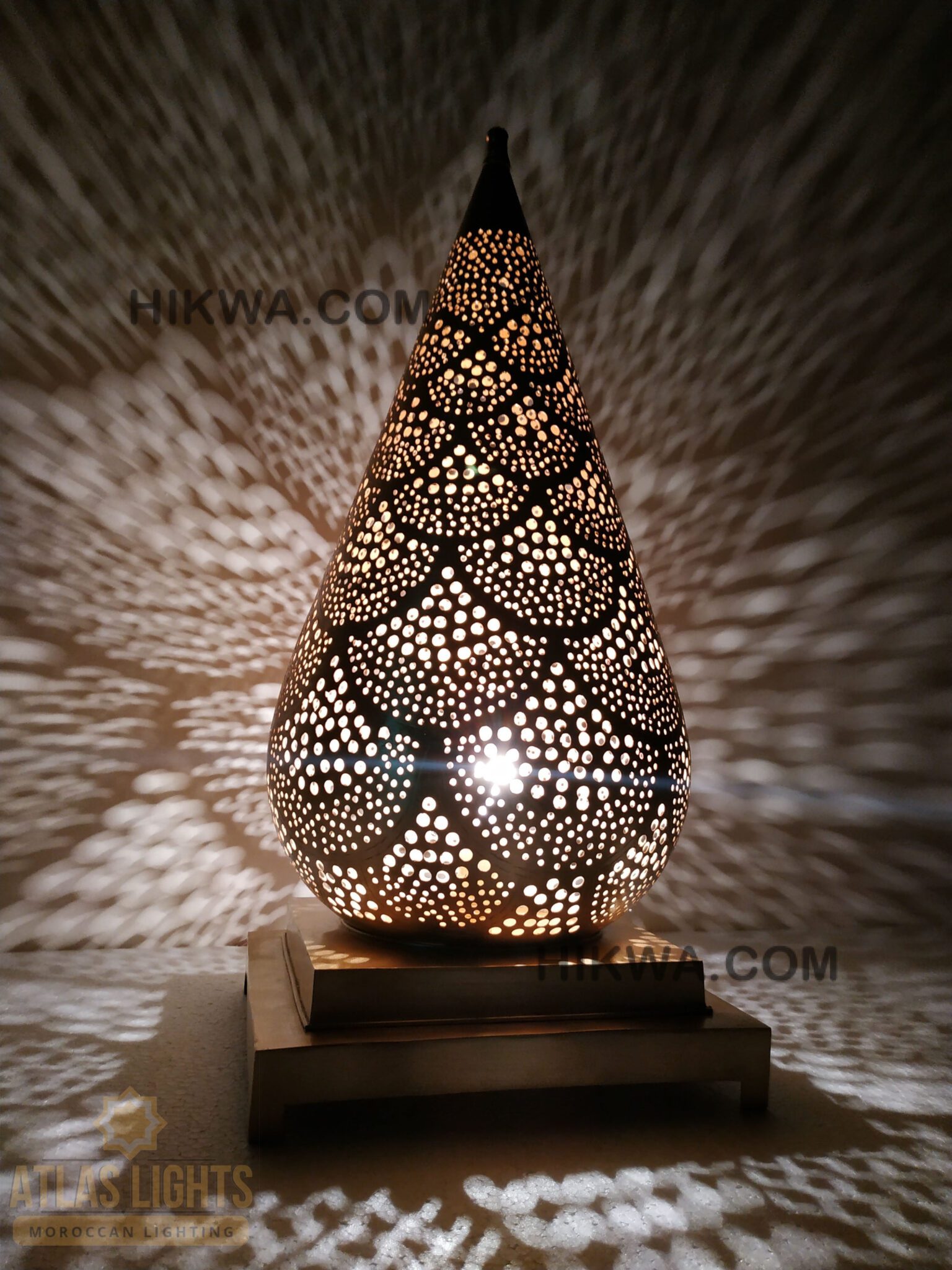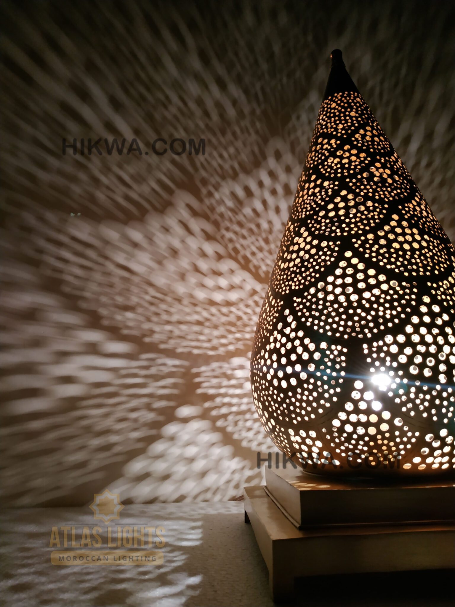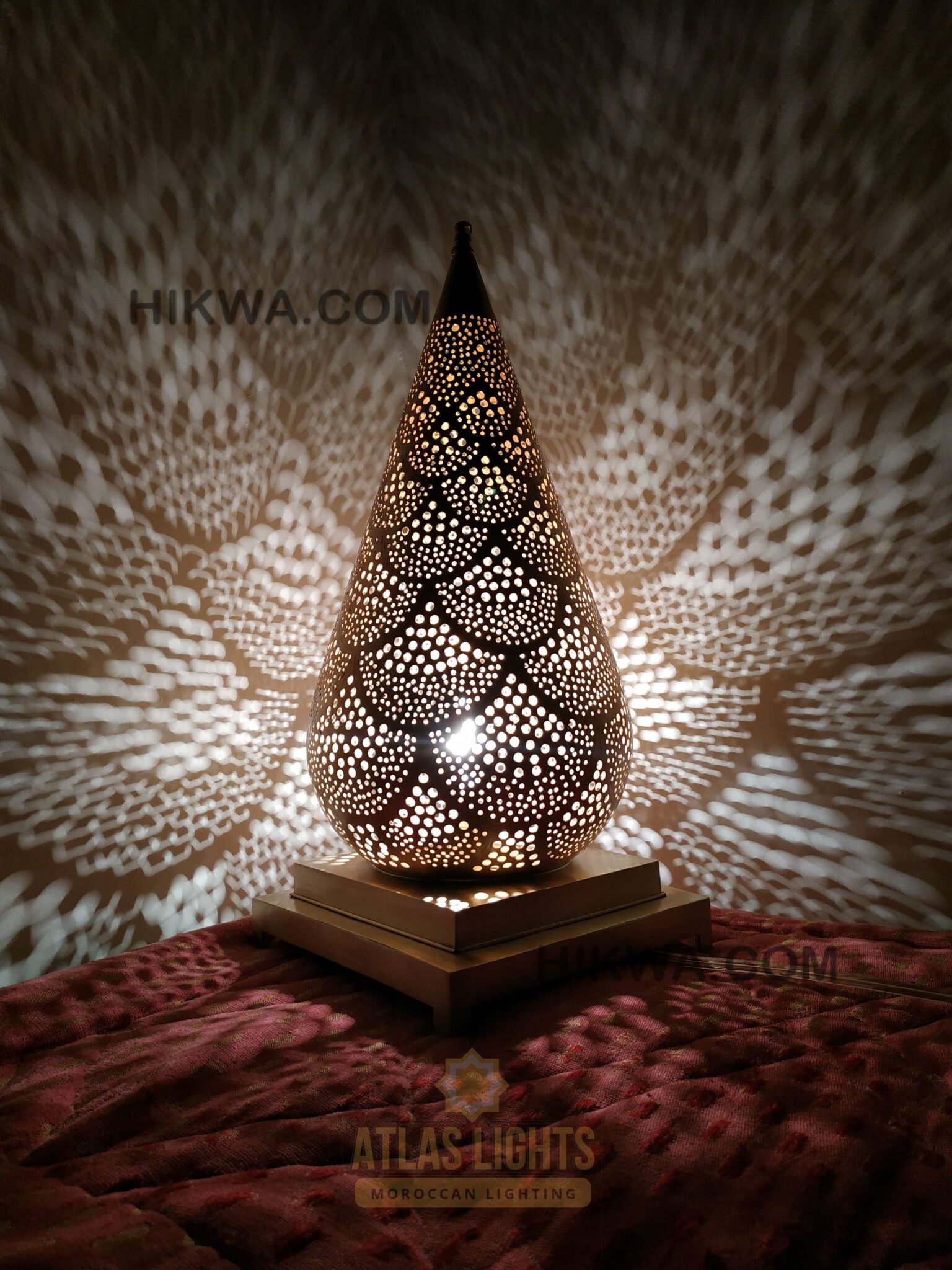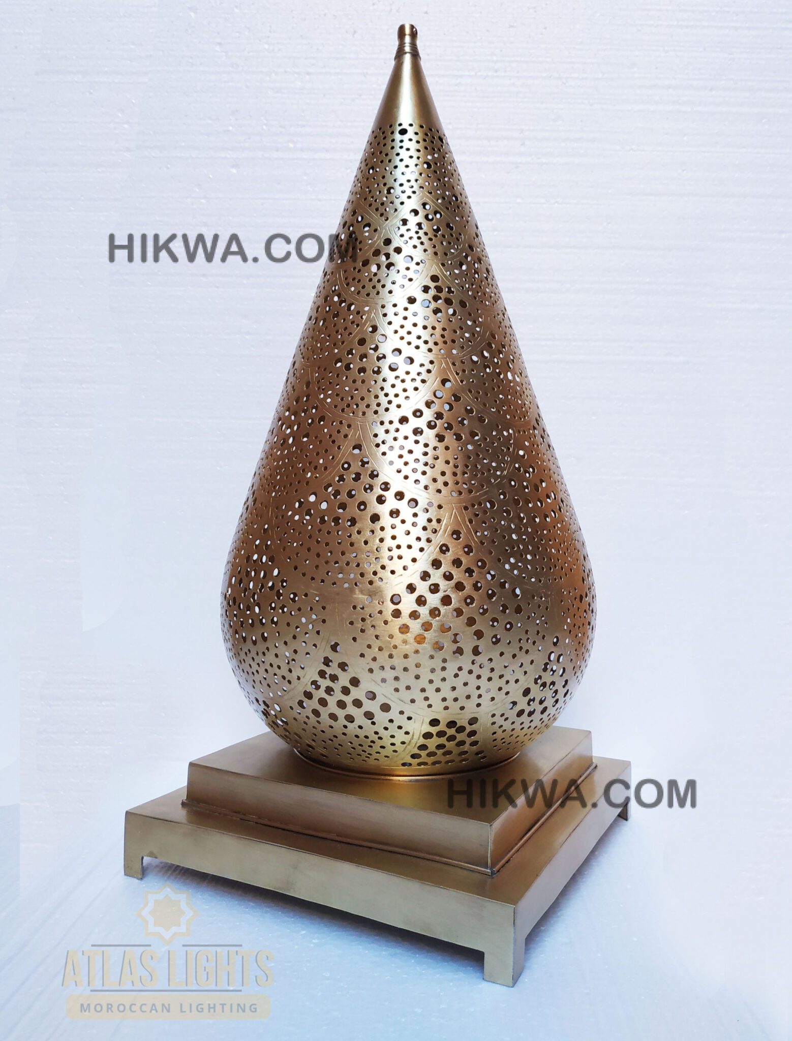 Moroccan Table Lamp Made From Solid Brass Sheets, This Table lamp is made by moroccan master artisans in Brass the surface is perforated, which will add a touch of craftsmanship to your interior by diffusing a reflection on the ceiling as well as the walls, and to illuminate the room.