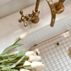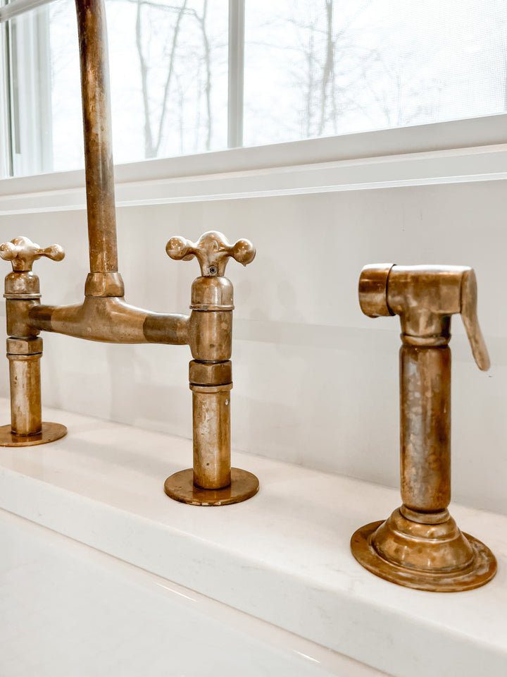 Natural Unlacquered Brass Kitchen Bridge Faucet 8″ spread straight legs