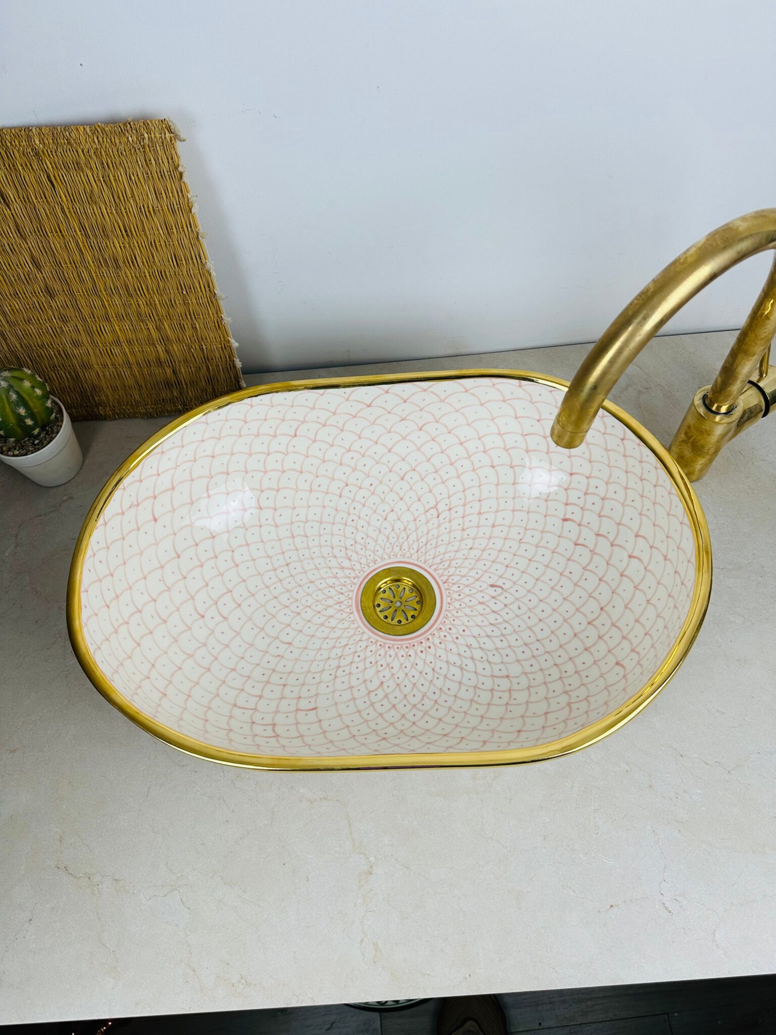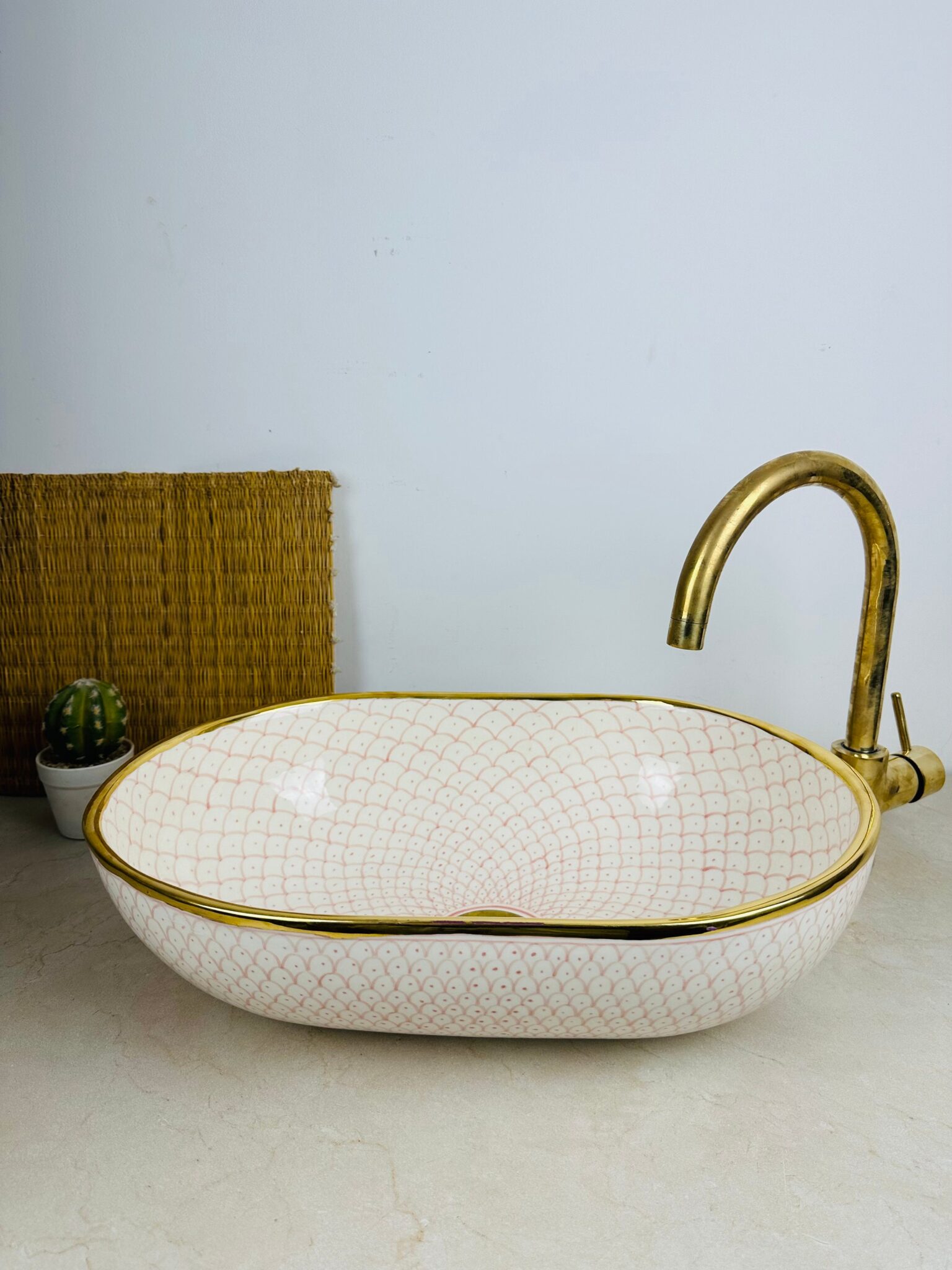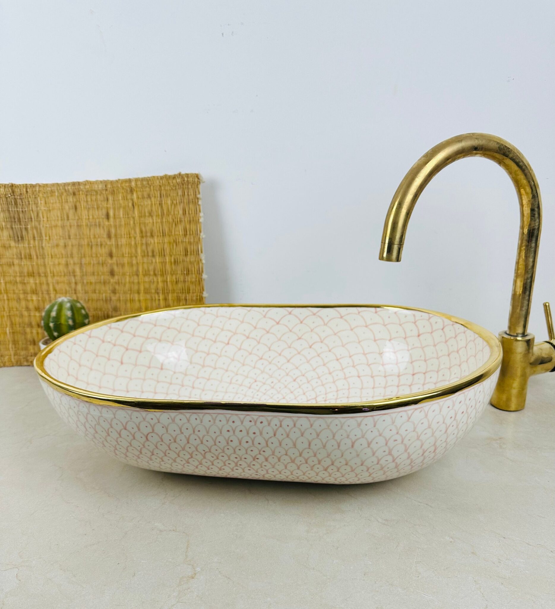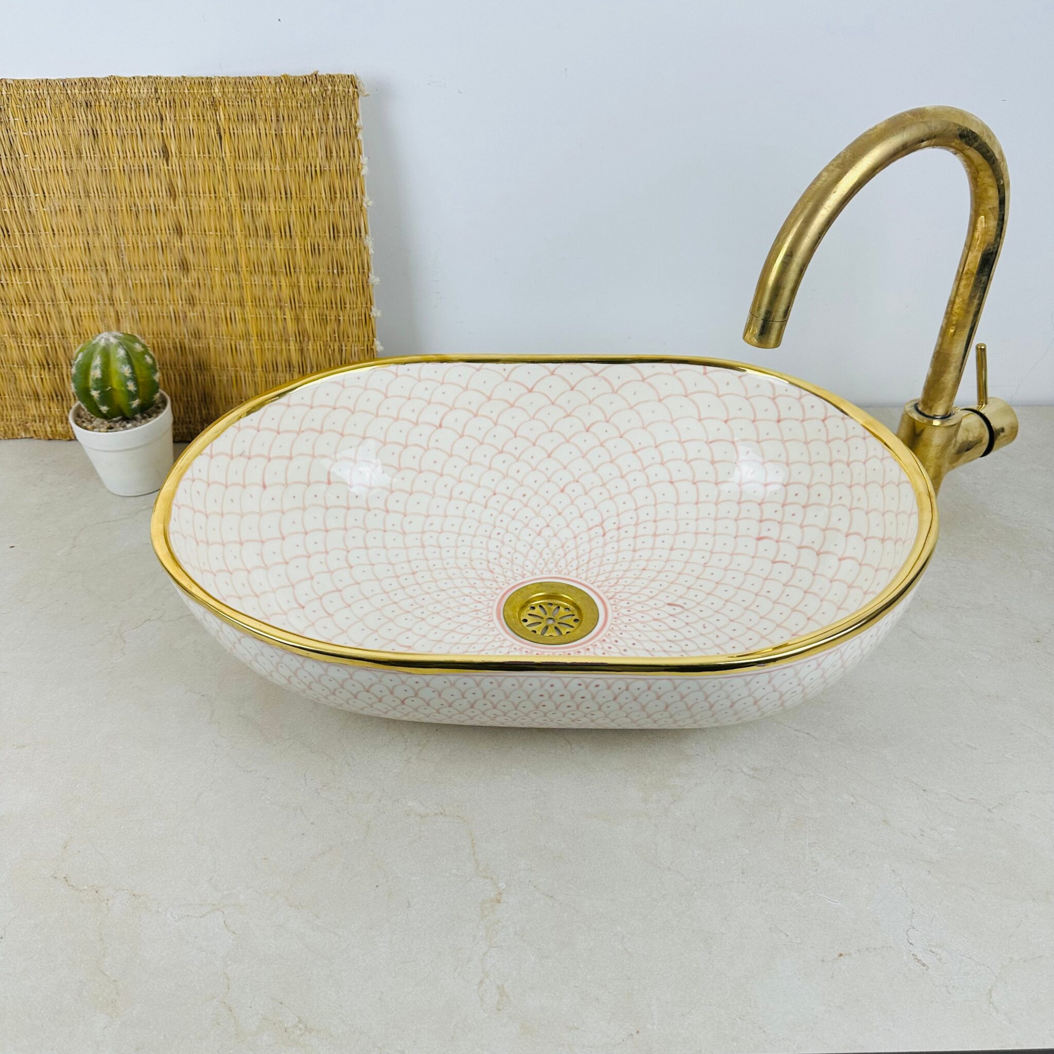 Immerse yourself in the beauty of Moroccan craftsmanship with our handmade ceramic sink. Each piece, available in sizes from 43.5/29.5cm & 38/29cm & 33.5/23.5cm in diameter, is a testament to the rich artistic heritage of Morocco.