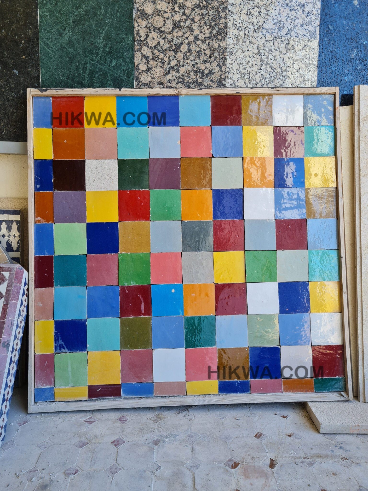 Then we use a material called ” La resin ” or ” cola sima” and we let them dry. After that we flip them to the front to see the design of the Zellige. That is the workmanship of Clay in the City of Fes.