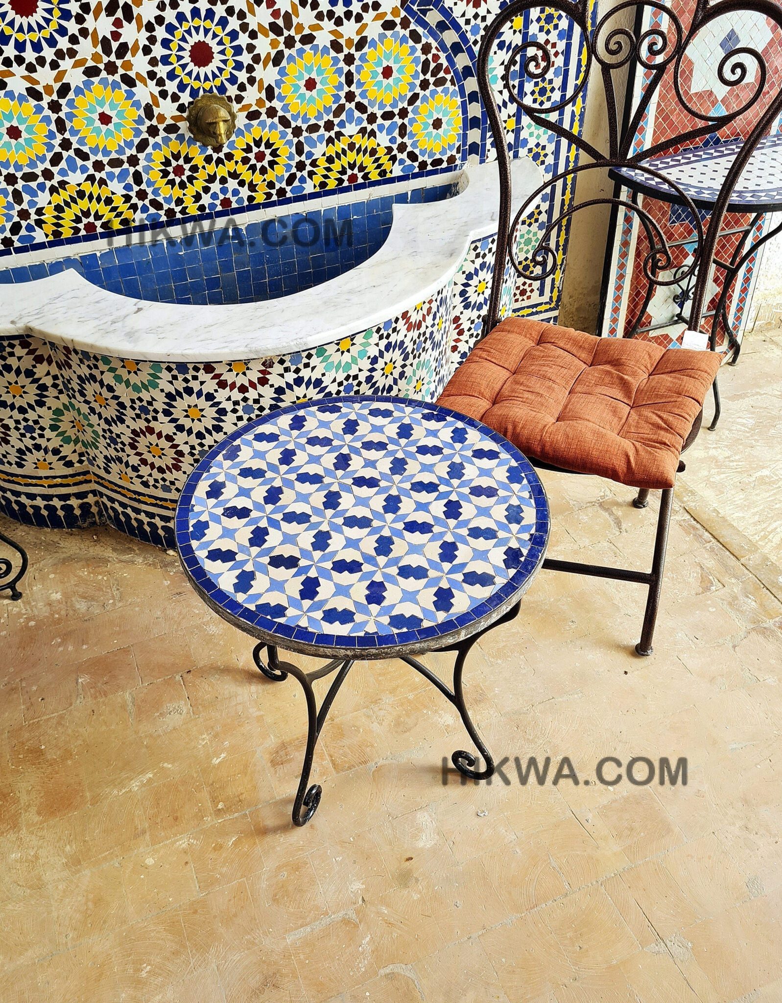 Moving to Zellige, when it bakes for the first time, and the second time with the paint it is given to Nekkach that decides what kind of pattern will be used on it depends on where Zellige will be put. He spreads them flipped in a geometrical pattern based on ancient references such as Karaouiyn, and the king’s palaces…