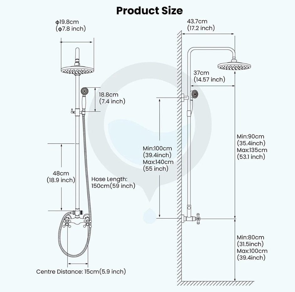 Victorian Style Shower Set with Handheld and Showerhead - Bronze Finish - 8” Round Rainfall Showerhead3