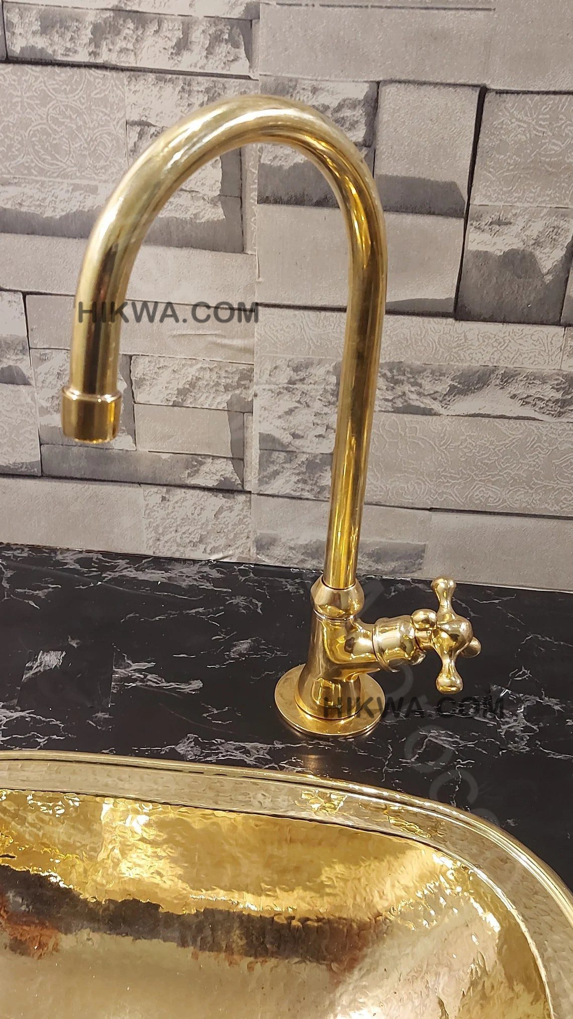 This unlacquered brass drinking water filter faucet is handcrafted by our craftsman in Morocco.