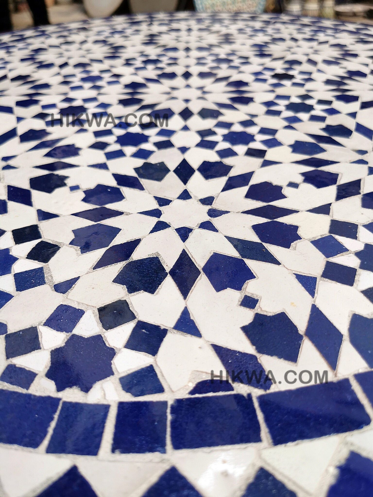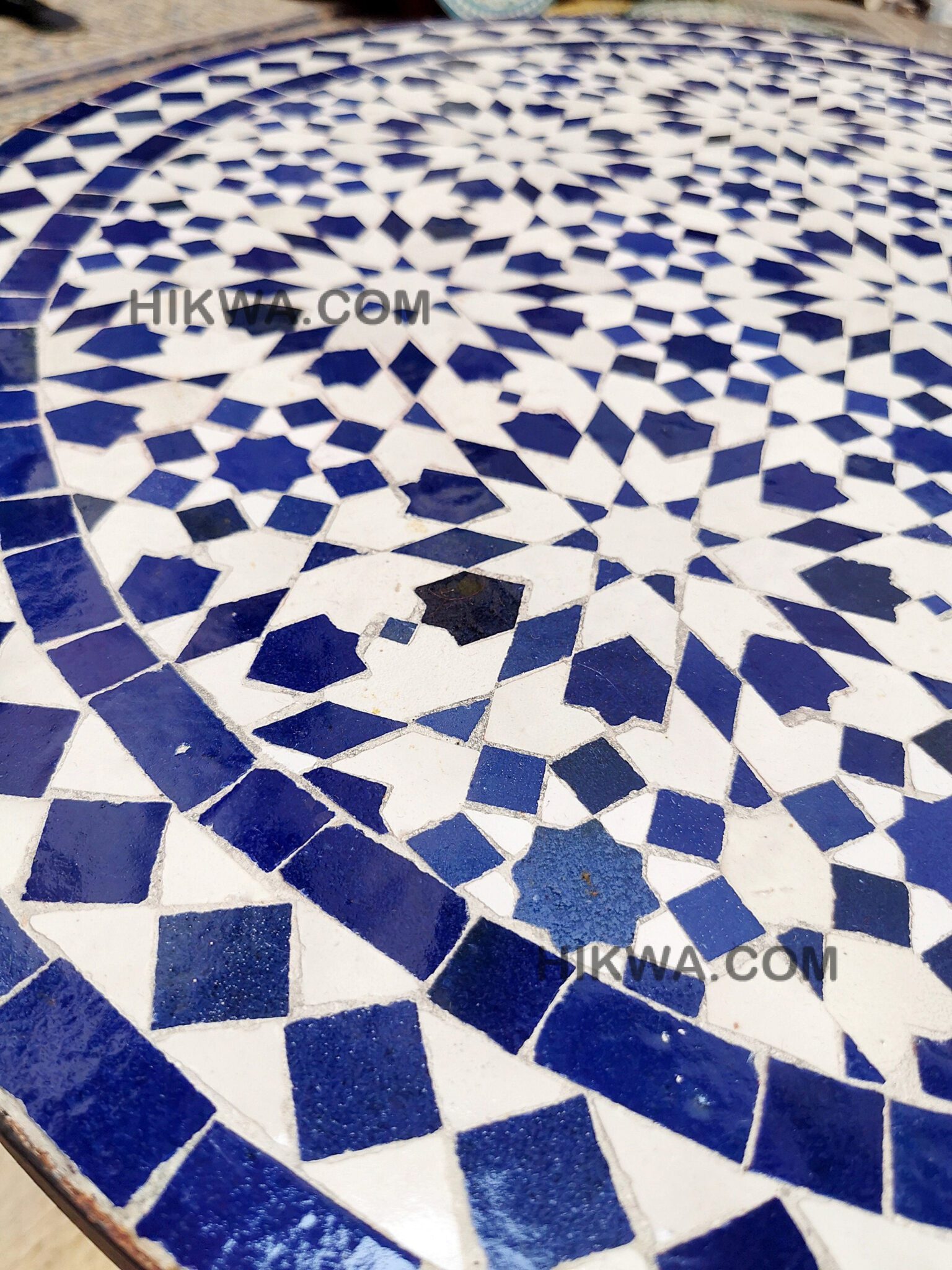 Moving to Zellige, when it bakes for the first time, and the second time with the paint it is given to Nekkach that decides what kind of pattern will be used on it depends on where Zellige will be put. He spreads them flipped in a geometrical pattern based on ancient references such as Karaouiyn, and the king’s palaces…