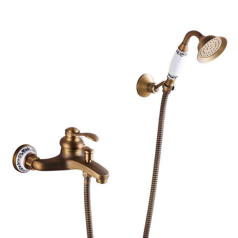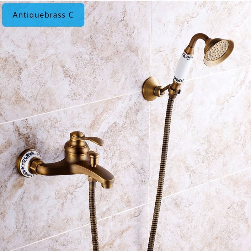 Telephone Style Bathtub Faucet Bathroom Bath Wall Mounted Hand Held Antique Brass Shower Head Kit Shower Faucet Sets