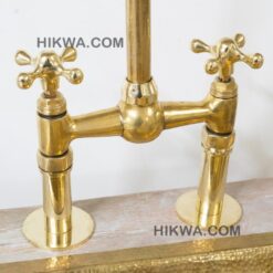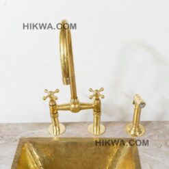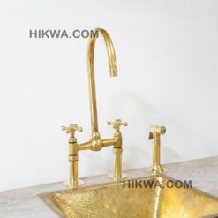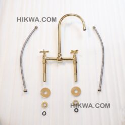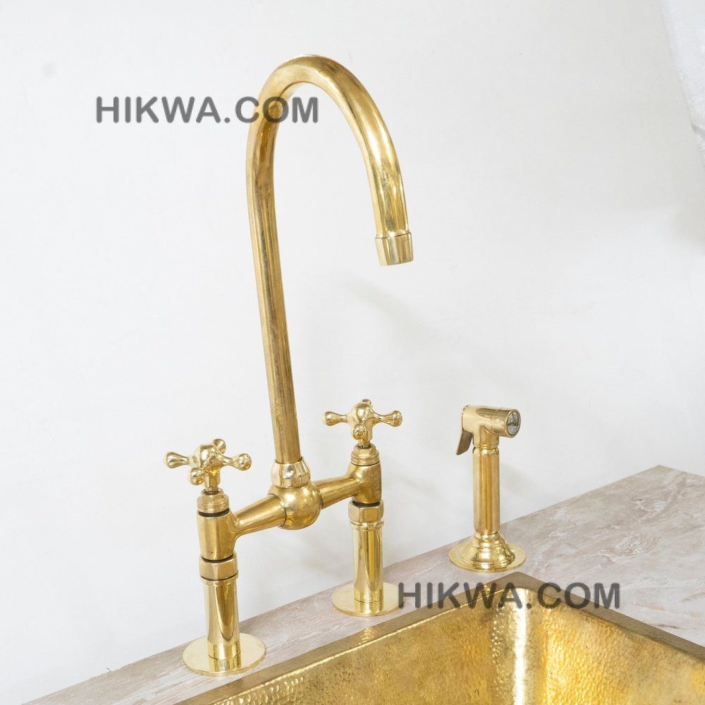 Give your kitchen a modern edge with the Ailey Bridge Faucet. Featuring cross handles, this piece’s elegant gooseneck shape extends over your sink for a streamlined look and feel. Made of brass, it boasts a durable finish that is available in a variety of colors to complement your décor. it includes a water-efficient and eco-friendly aerator.