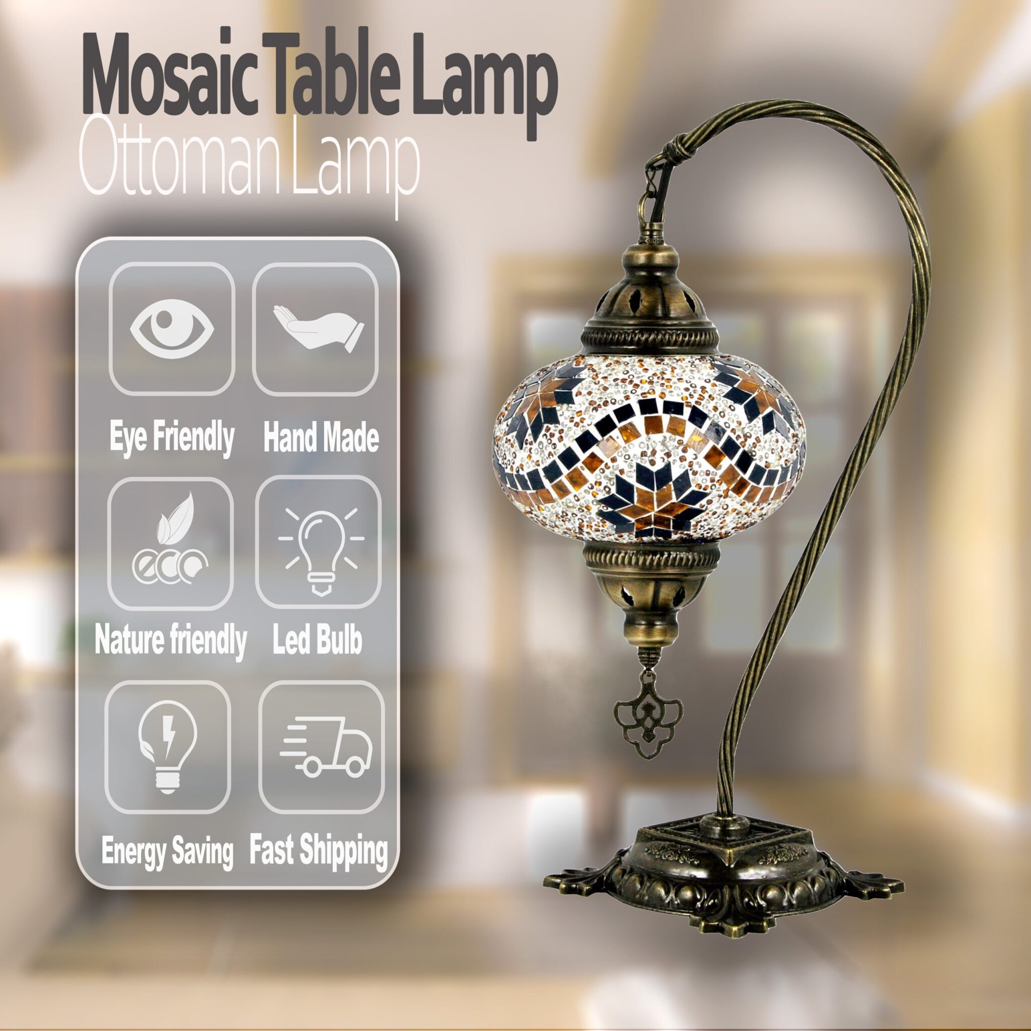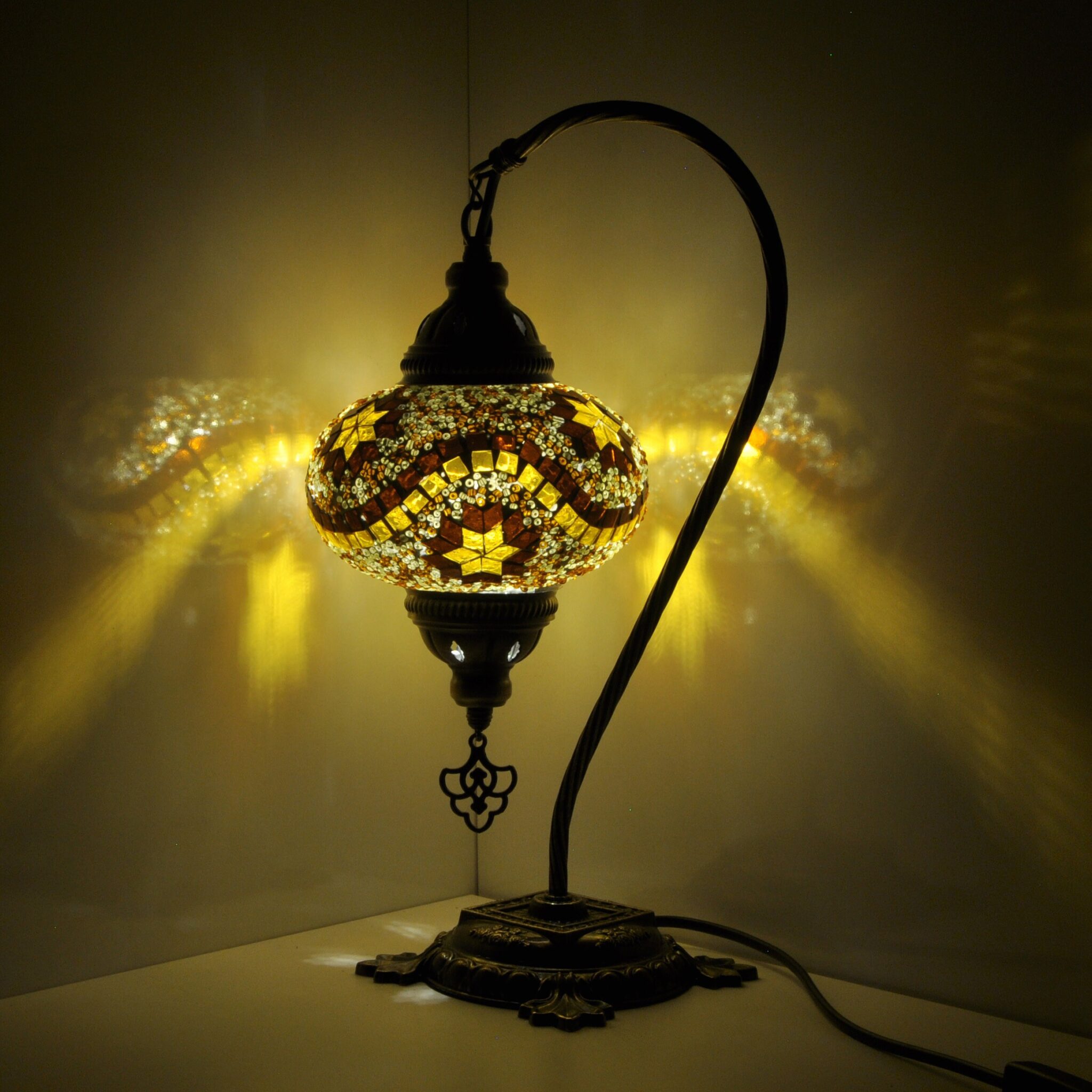 Turkish Lamp Mosaic Table Lamps | Turkish Moroccan Lamp | Handmade Swan Neck Tiffany Night Lamp | Mosaic Glass Bedside Lamp with Led Bulb