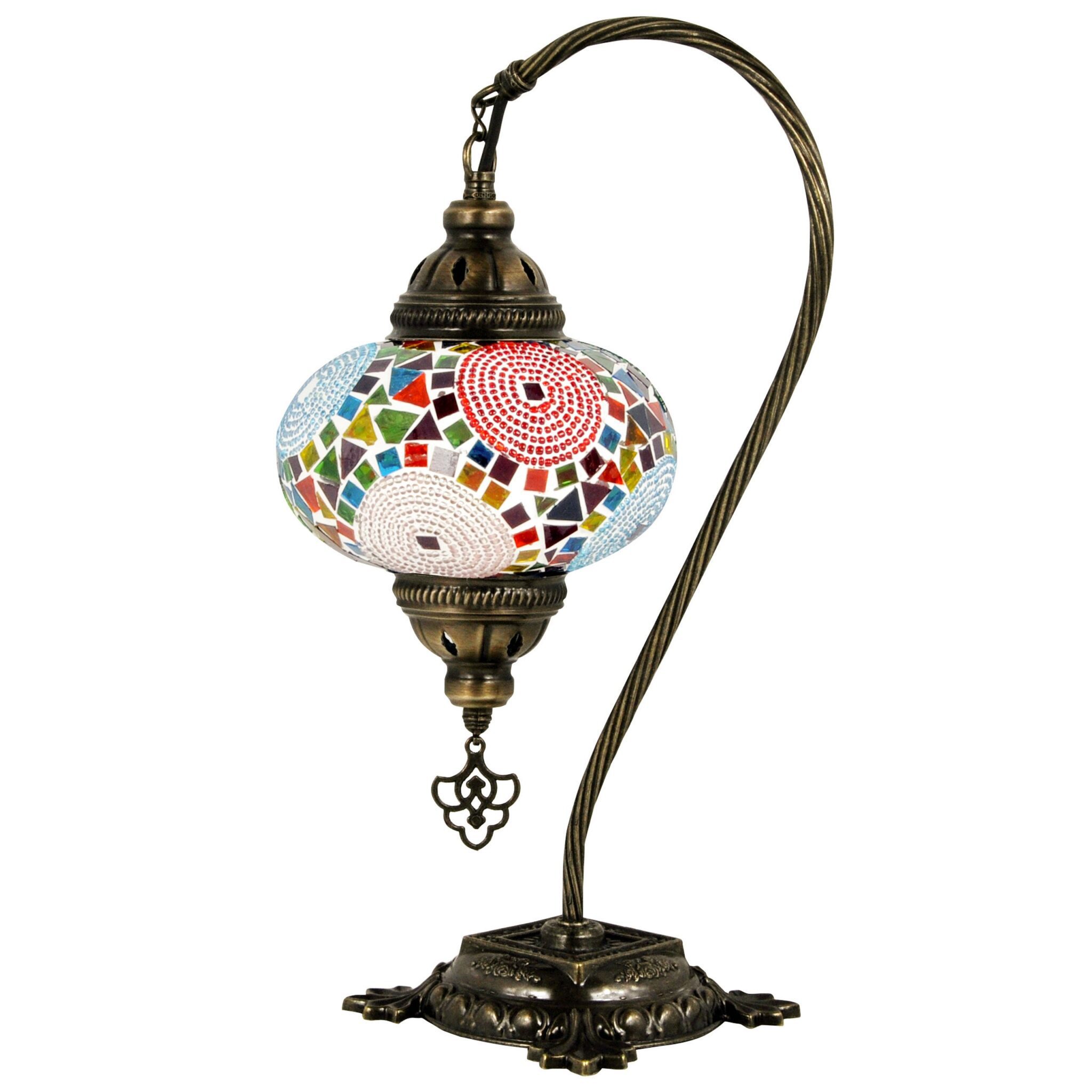 Handmade Turkish Lamp | Turkish Moroccan Mosaic Lamp Light | Swan Neck Table Lamp Mosaic Glass | Bohemian Colorful Mosaic Bedside Night Lamp with Led Bulb