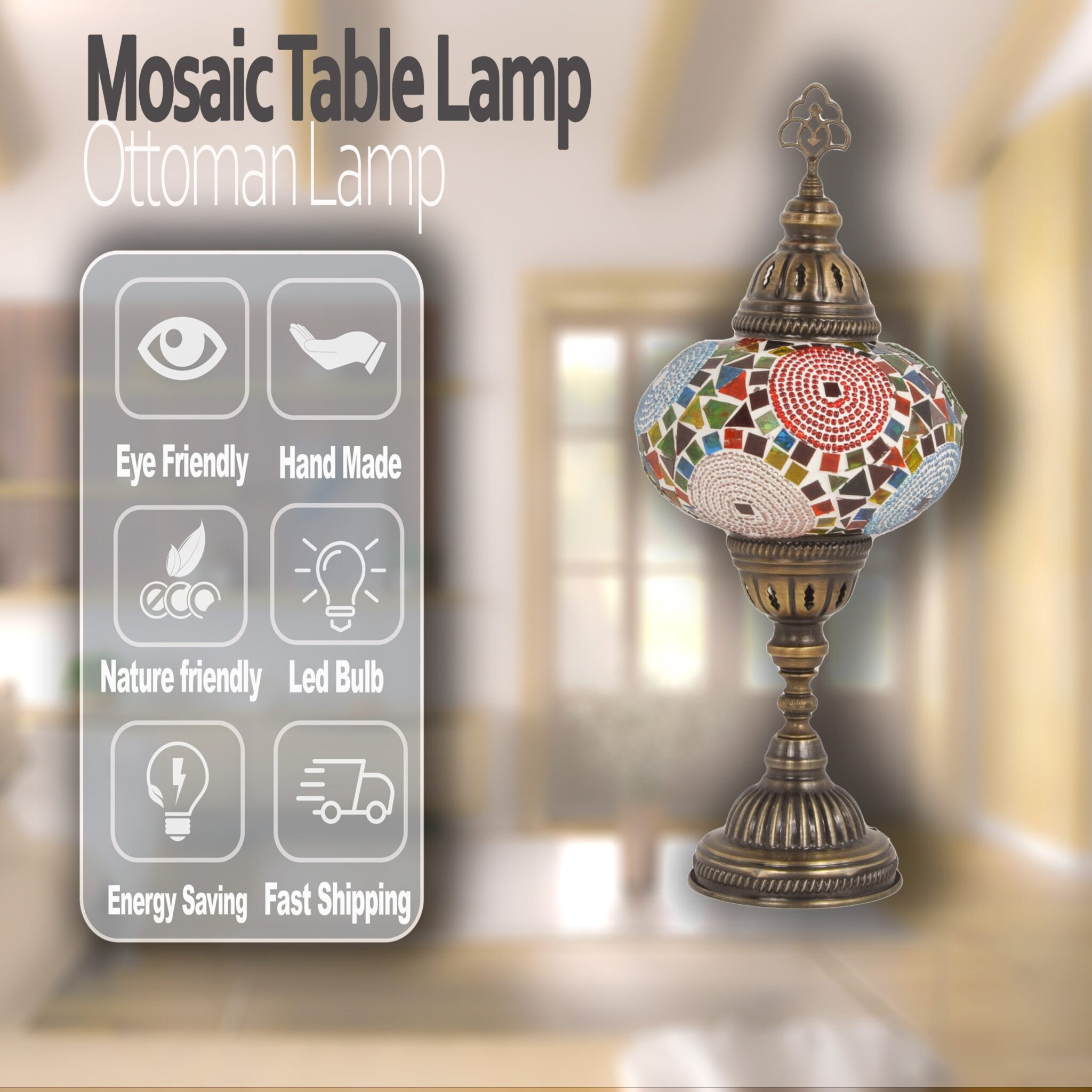 Turkish Lamp Mosaic Table Lamps | Turkish Moroccan Lamp | Handmade Tiffany Night Lamp | Mosaic Glass Bedside Night Lamp with Led Bulb