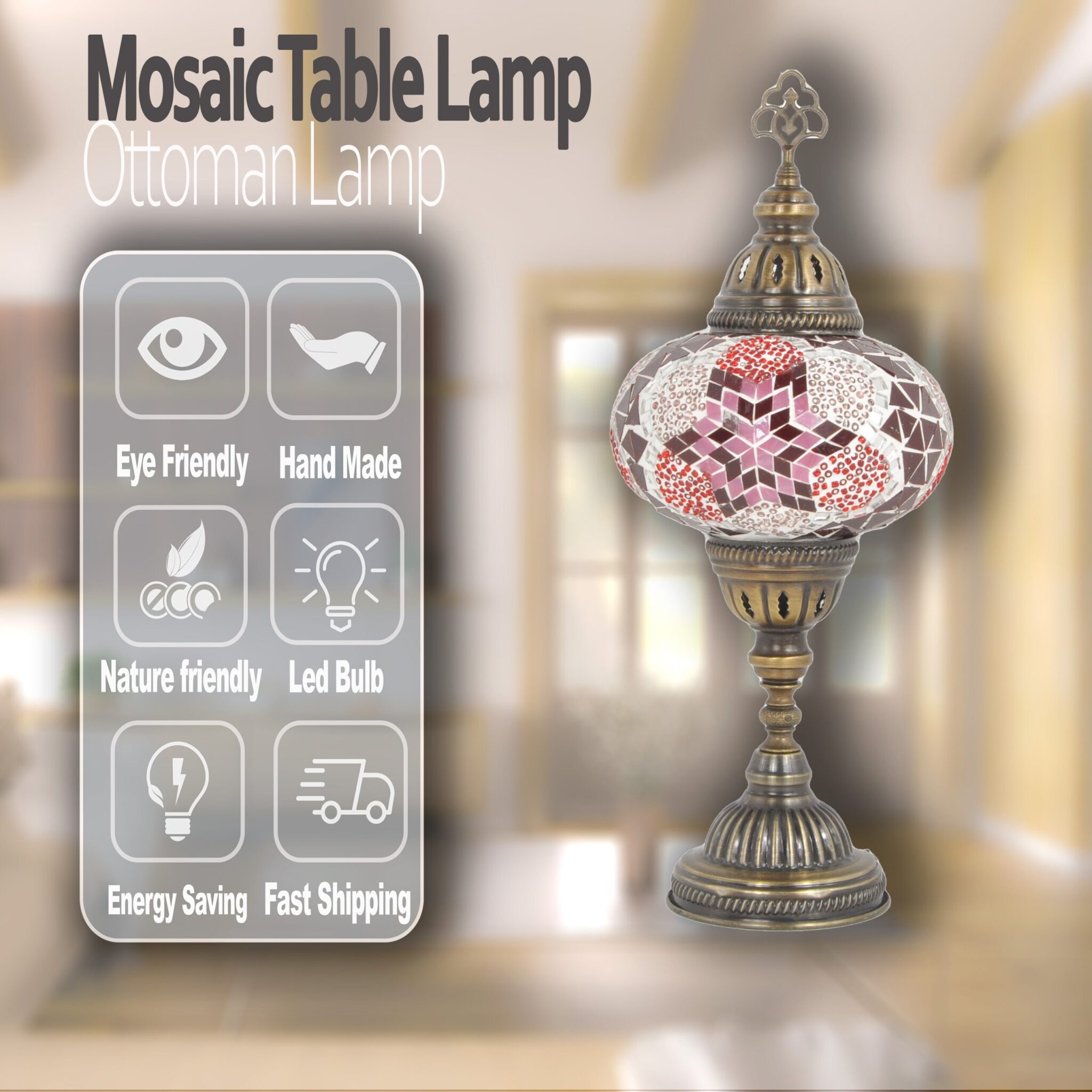 Turkish Lamp Mosaic Table Lamps | Turkish Moroccan Lamp | Handmade Tiffany Night Lamp | Mosaic Glass Bedside Night Lamp with Led Bulb