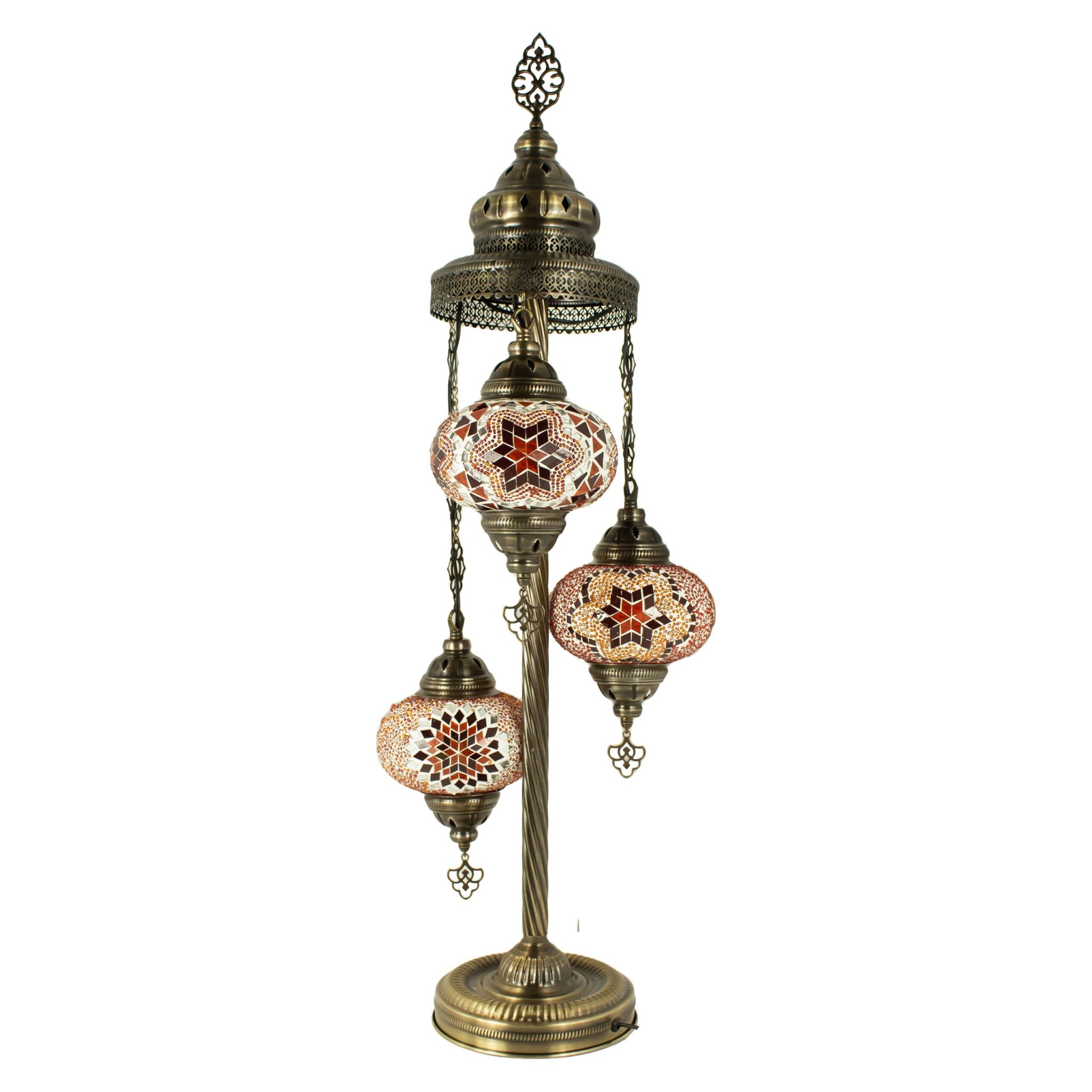 Turkish Moroccan Mosaic Floor Lamp | Turkish Lamp 3 Big Size 6.5″ Globes | Handmade Corner Night Lamp | Mosaic Standing Lamps with LED Bulb
