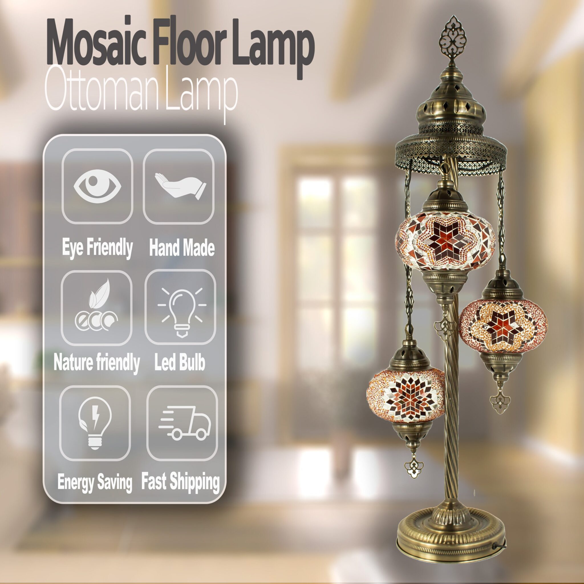 【Perfect Accessories】 – Turkish Lamp Mosaic Glass 3 Big Globe floor lamps will be a perfect accessories for your home.