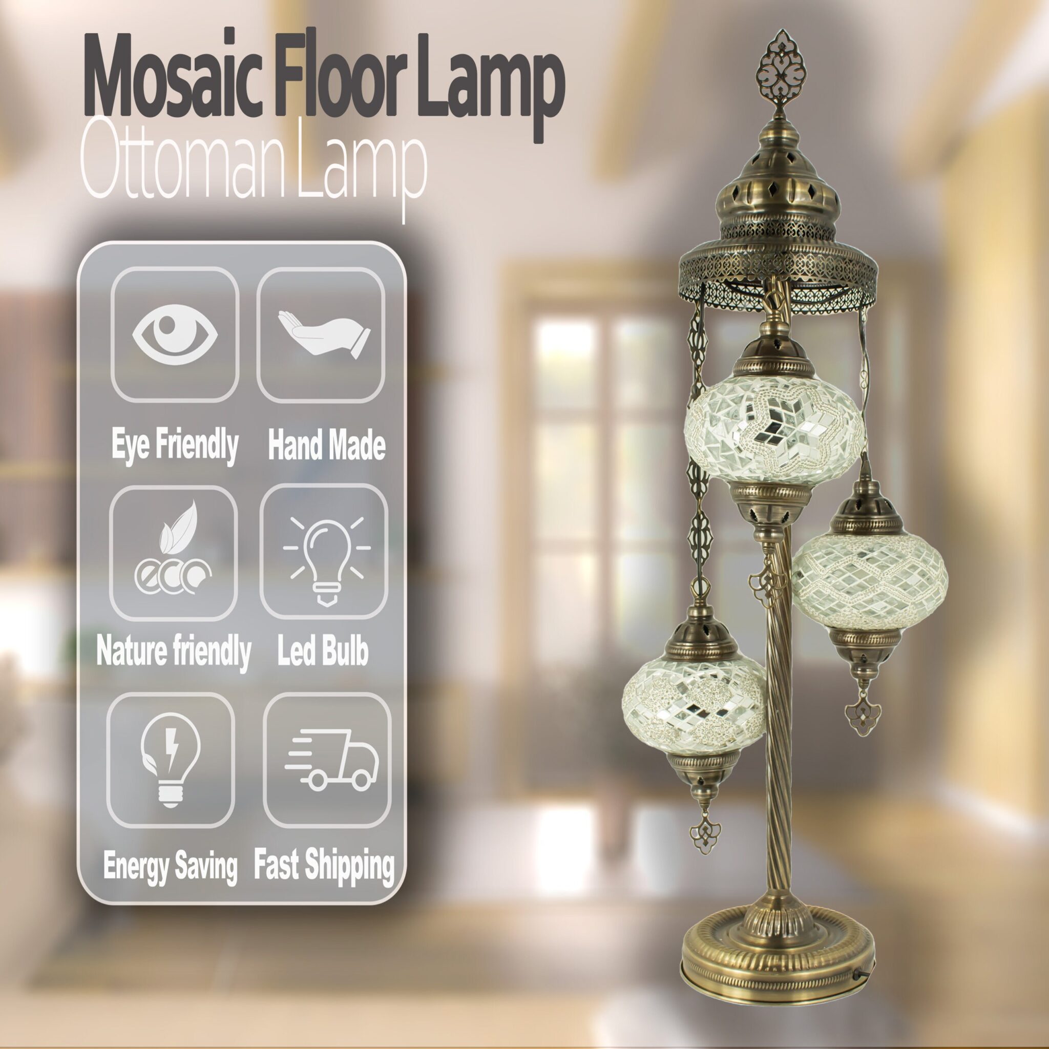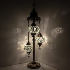 Turkish Moroccan Mosaic Floor Lamp | Turkish Lamp 3 Big Size 6.5″ Globes | Handmade Corner Night Lamp | Mosaic Standing Lamps with LED Bulb