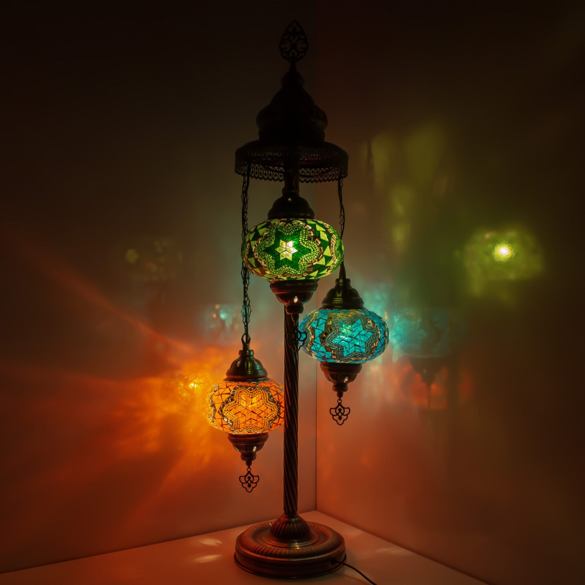 Turkish Moroccan Mosaic Floor Lamp | Turkish Lamp 3 Big Size 6.5″ Globes | Handmade Corner Night Lamp | Mosaic Standing Lamps with LED Bulb