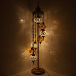 Turkish Moroccan Mosaic Floor Lamp | Turkish Lamp 7 Big Size 6.5″ Globes | Handmade Corner Night Lamp | Mosaic Standing Lamps with LED Bulb
