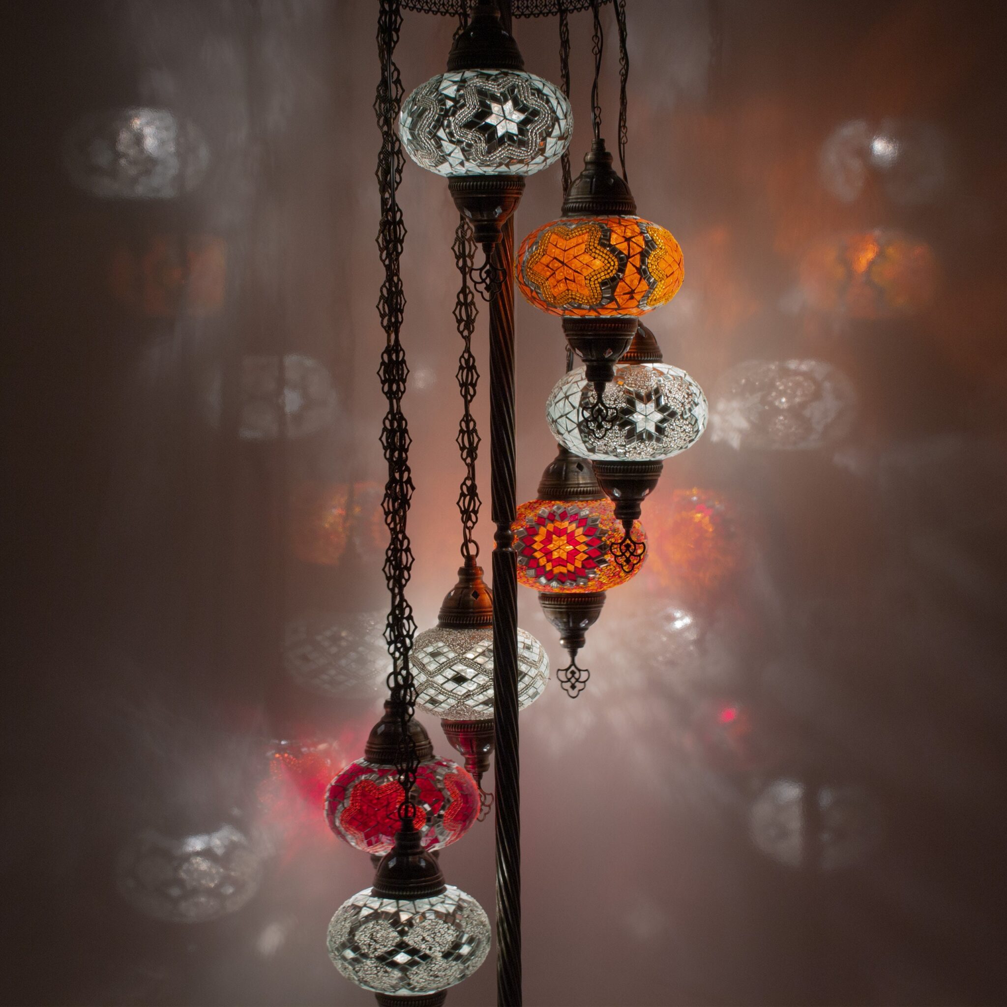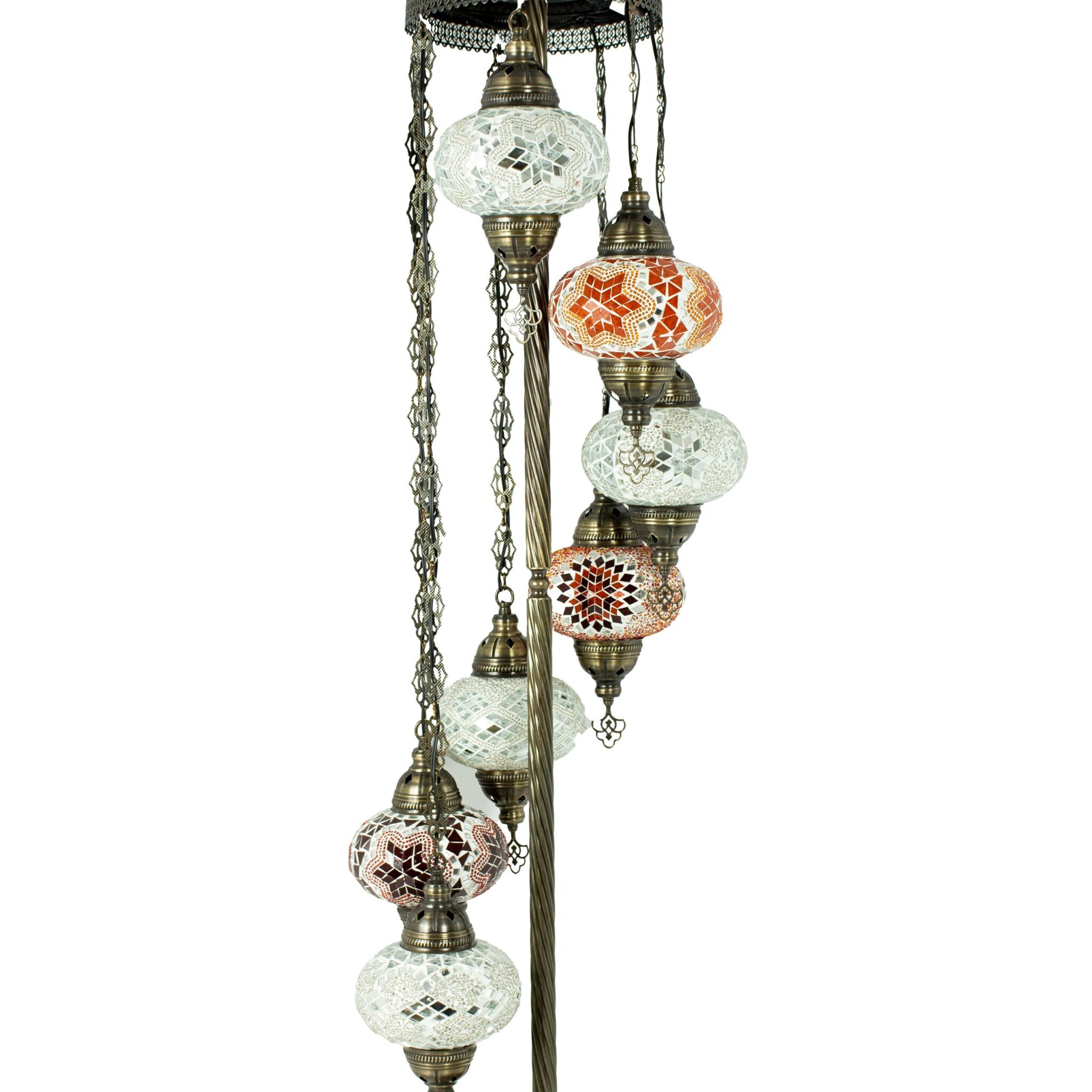 Turkish Moroccan Mosaic Floor Lamp | Turkish Lamp 7 Big Size 6.5″ Globes | Handmade Corner Night Lamp | Mosaic Standing Lamps with LED Bulb