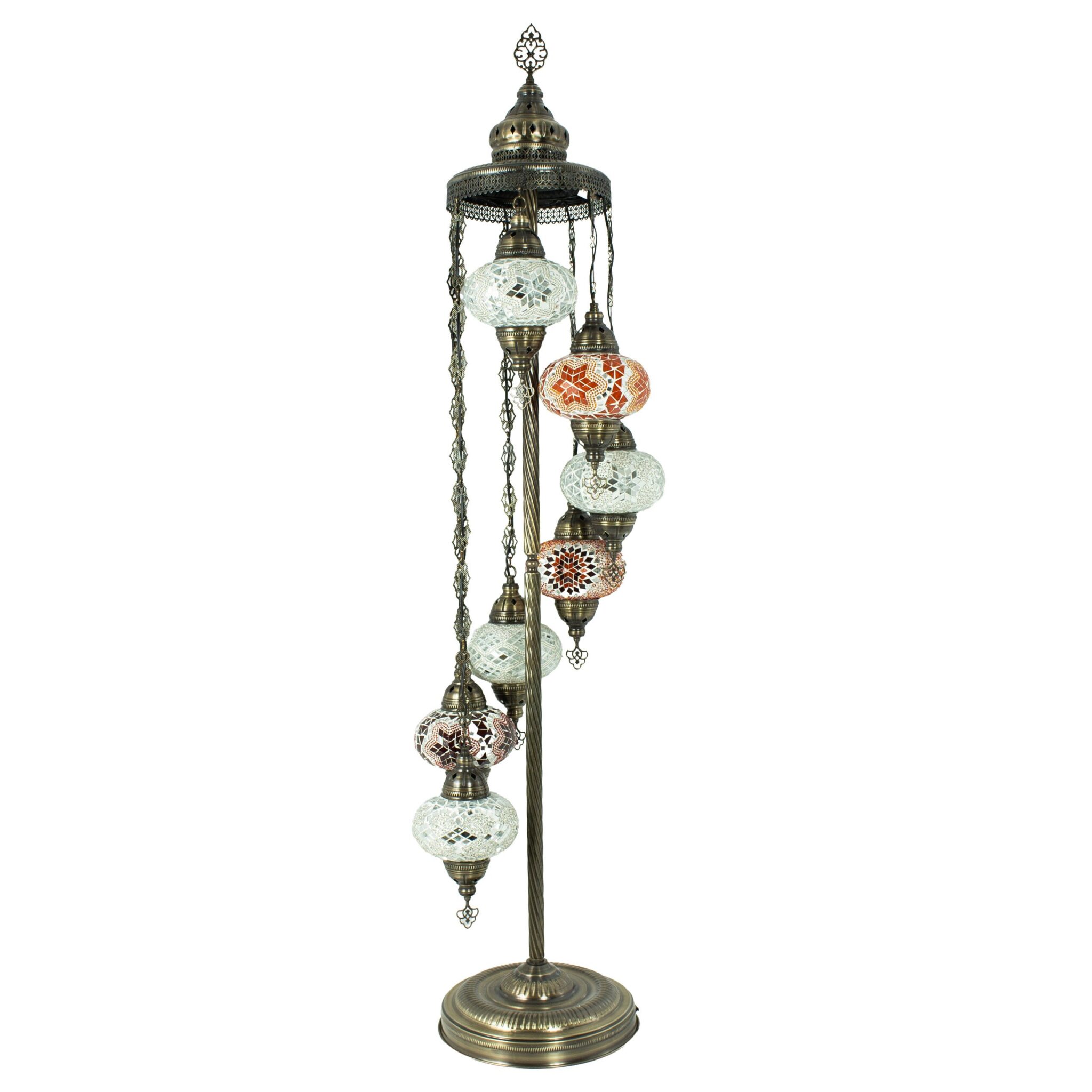 Turkish Moroccan Mosaic Floor Lamp | Turkish Lamp 7 Big Size 6.5″ Globes | Handmade Corner Night Lamp | Mosaic Standing Lamps with LED Bulb