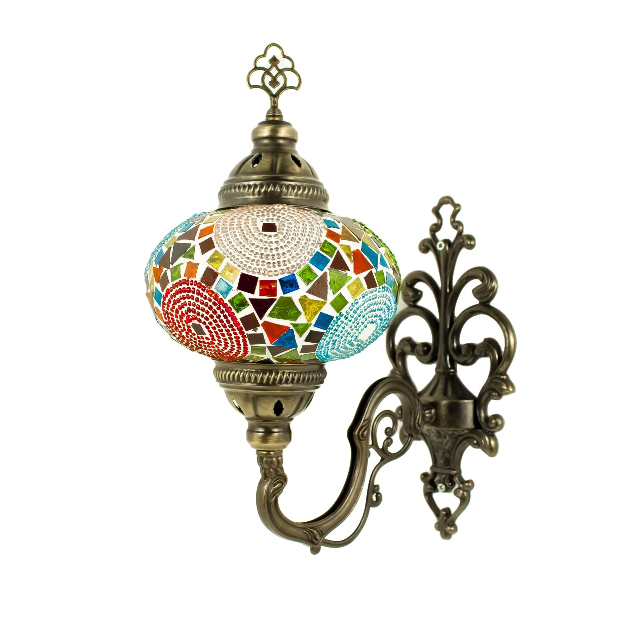 Turkish Moroccan Mosaic Wall Sconce Lamp with Bronze Base | Tiffany Style with Mosaic Glass Shade | Mosaic Glass Bedside Night Lamp&Led Bulb