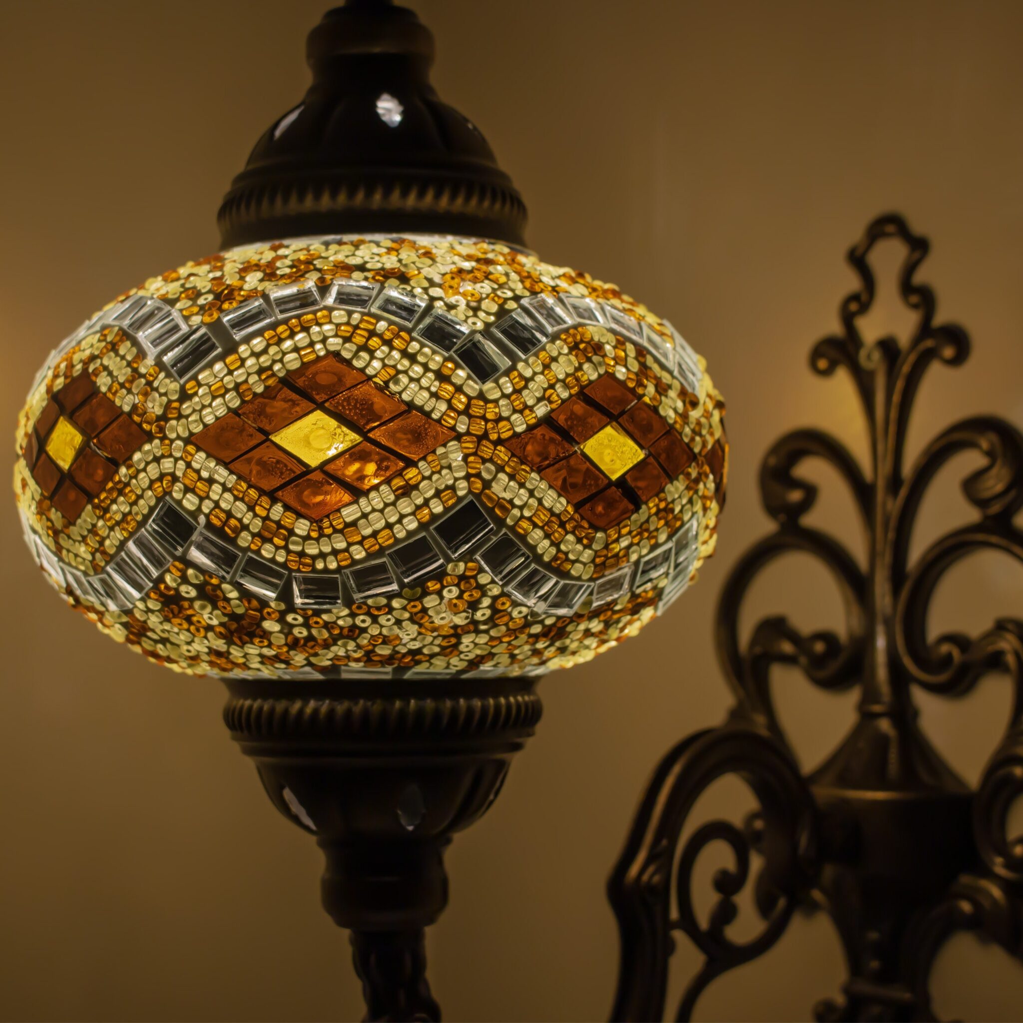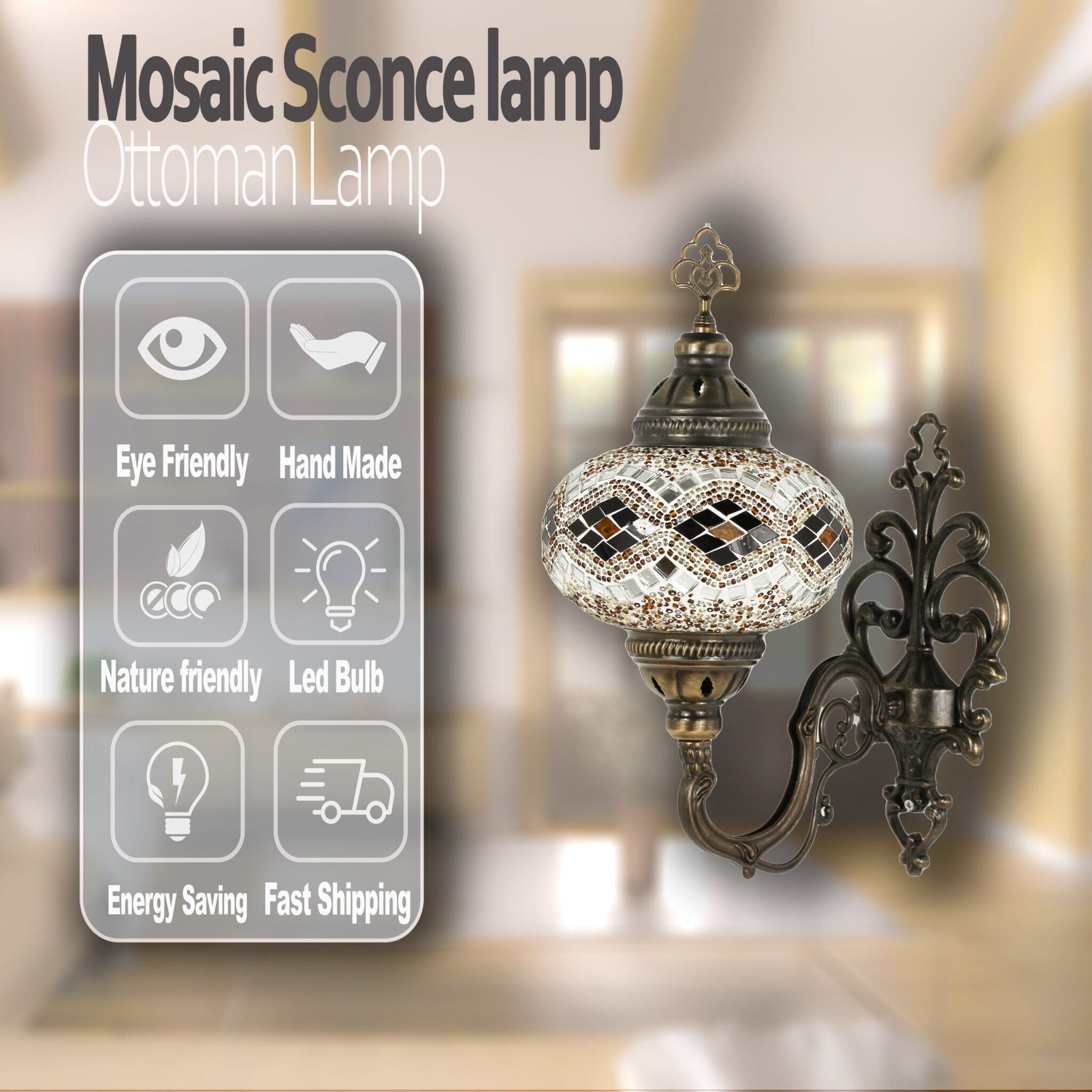 Turkish Moroccan Mosaic Wall Sconce Lamp with Bronze Base | Tiffany Style with Mosaic Glass Shade | Mosaic Glass Bedside Night Lamp&Led Bulb