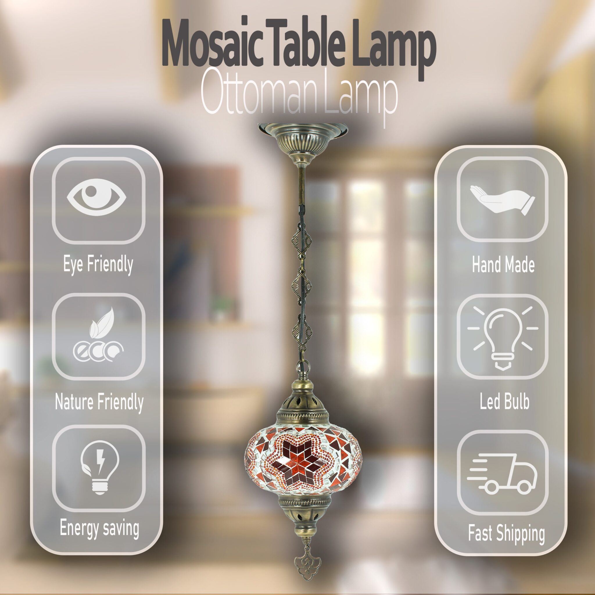Turkish Mosaic Hanging Chandelier Pendant Lamp- Handmade Ceiling Hanging Colorful Moroccan Light Fixtures for Bedroom Home Lighting Decors
