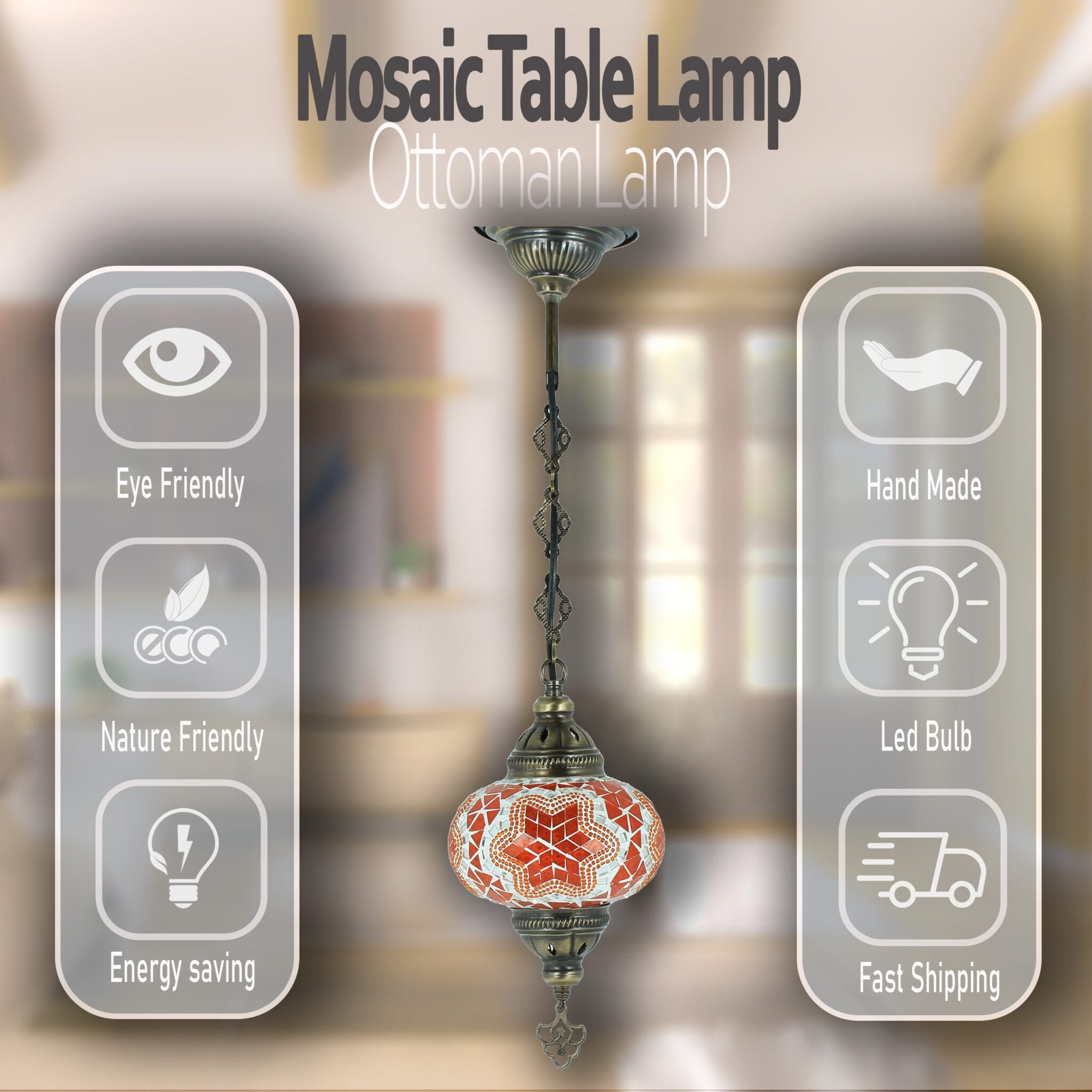 Turkish Mosaic Hanging Chandelier Pendant Lamp- Handmade Ceiling Hanging Colorful Moroccan Light Fixtures for Bedroom Home Lighting Decors