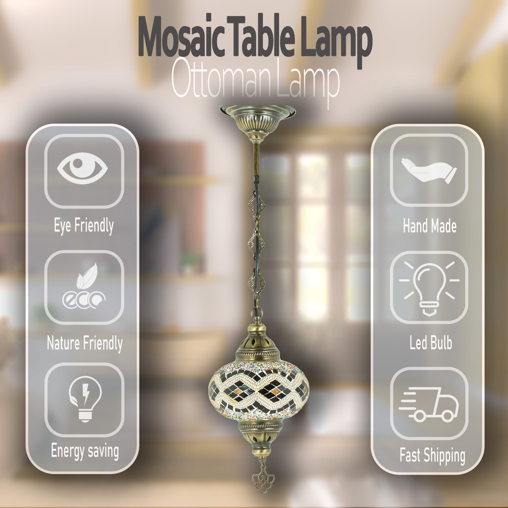 Turkish Mosaic Hanging Chandelier Pendant Lamp- Handmade Ceiling Hanging Colorful Moroccan Light Fixtures for Bedroom Home Lighting Decors