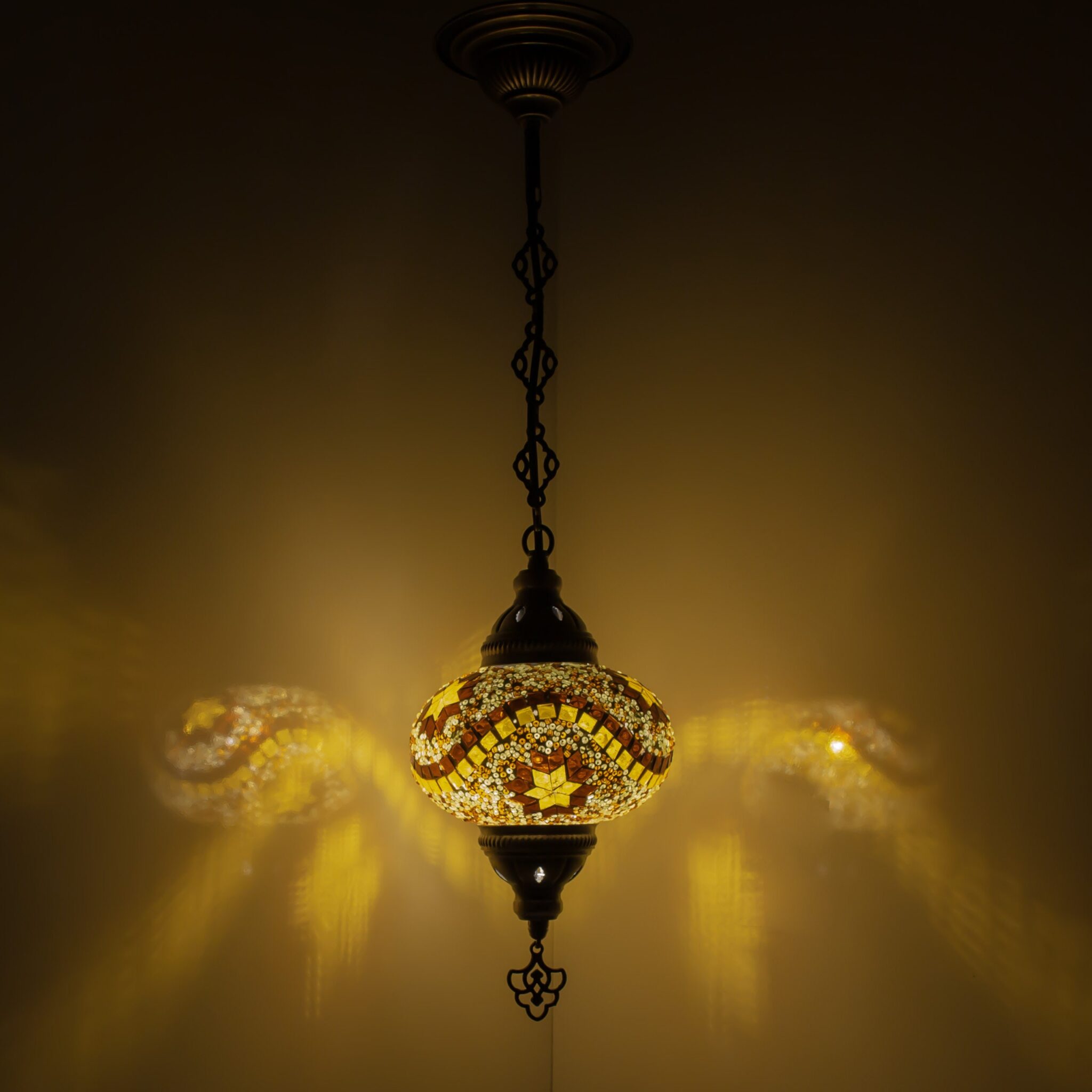 Turkish Mosaic Hanging Chandelier Pendant Lamp- Handmade Ceiling Hanging Colorful Moroccan Light Fixtures for Bedroom Home Lighting Decors
