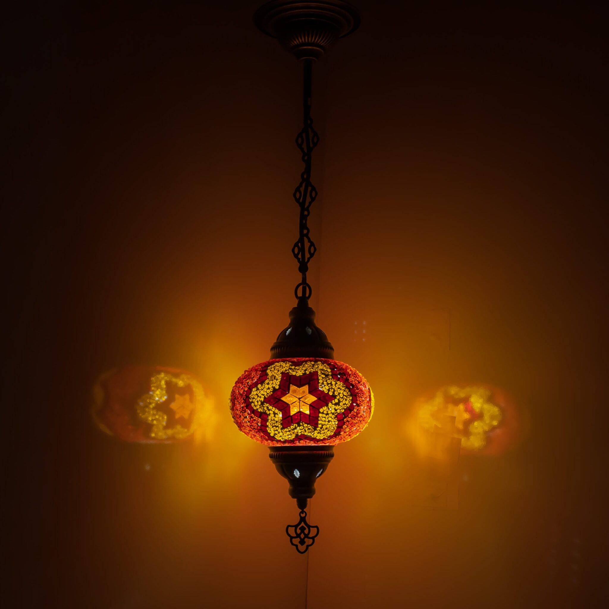Turkish Mosaic Hanging Chandelier Pendant Lamp- Handmade Ceiling Hanging Colorful Moroccan Light Fixtures for Bedroom Home Lighting Decors