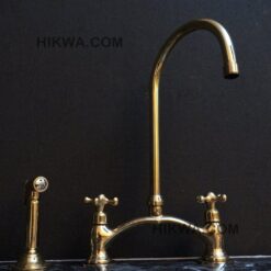 Unlacquered Brass Kitchen Bridge Faucet Vectorian Style