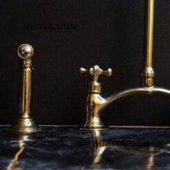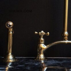 The graceful elegance of the timeless design is beautifully merged between Moroccan flair and Victorian delicacy within this unlacquered brass faucet, Because of its added architectural elements and detailing, the natural finish will pop against your surrounding kitchen decor. Allow the brass construction, side sprayer, and swivel abilities to provide a sturdy and reliant fixture, great for use with any sink.