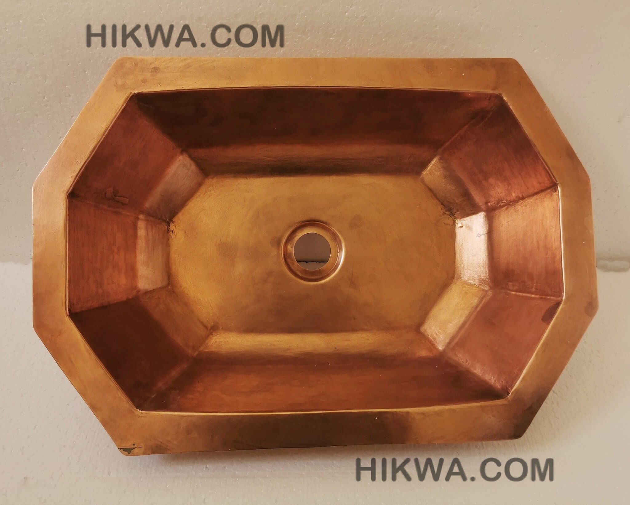 baldiart Copper Hexagon Sink makes the perfect statement for the stylish who want something out of the ordinary. Great handmade copper sink for a corner as the faucet can be corner mounted to maximize your working space. This copper sink can be used as a bar or prep sink as well as a utility sink in the laundry room. Call Copper Sinks Direct and request a lavatory drain opening and it makes a great, deep bathroom sink.