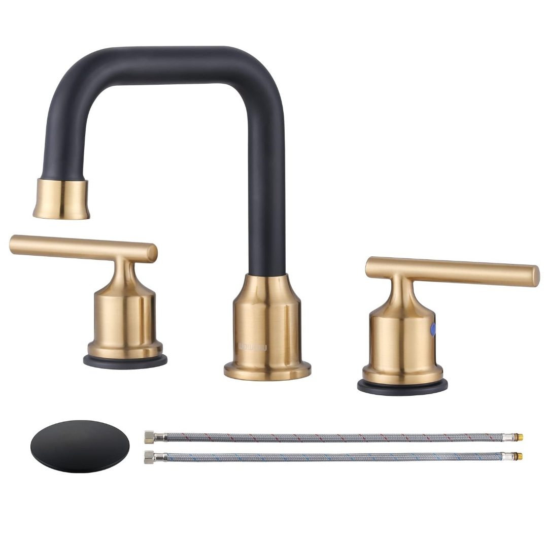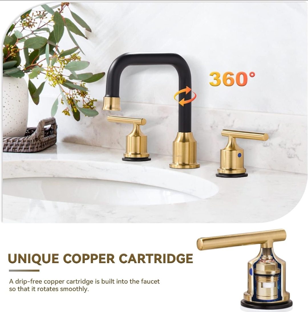 * Low-key luxury in a pure black and gold finish, unique high square spout design suitable for creating modern and classic bathroom decoration style.
