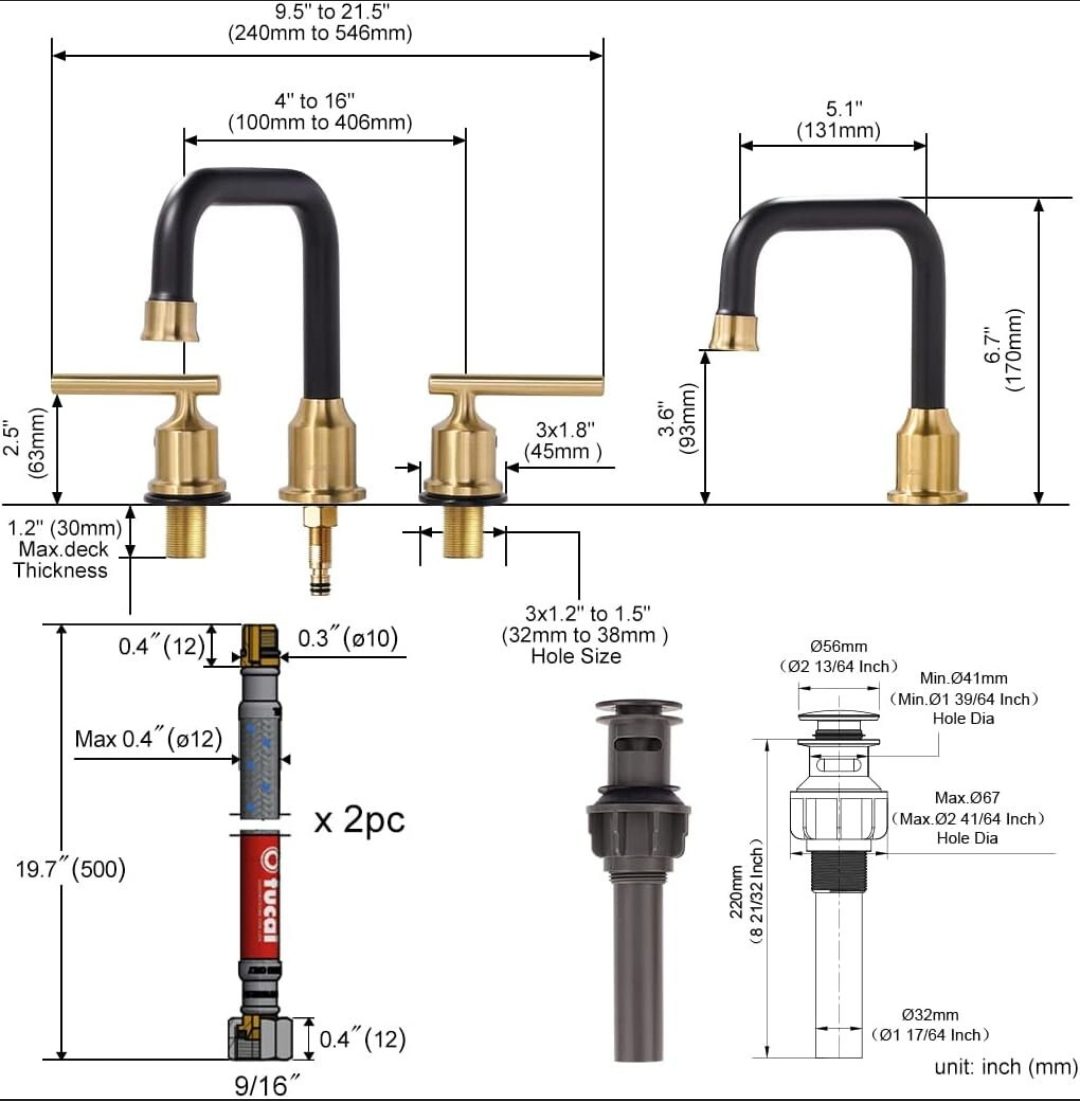 * From 6 to16 inch widespread bathroom faucet in 3-hole mounting, the distance is adjustable upon your actual requirements.