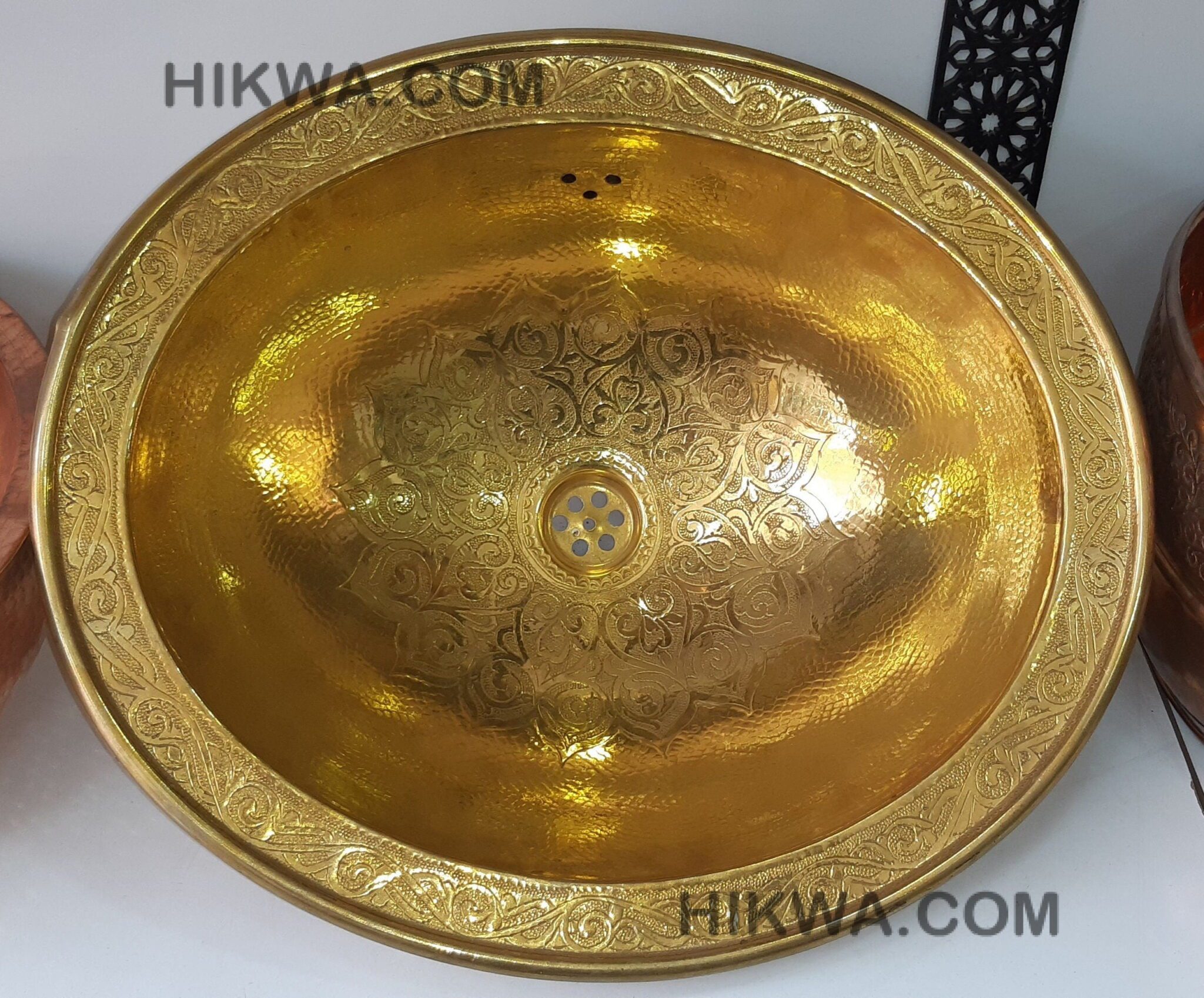 Sink Brass Or Maroccan,Handmade round / oval gold tone hammered brass Moroccan sink, Moroccan bathroom decor, vintage style brass sink. Very beautiful round copper basin engraved by hand.Neat work and finish. Taille : 37 CM / 43 CM | 17CM Express shipping worldwide via FedEx.Delivery to most countries within 3-7 business days.